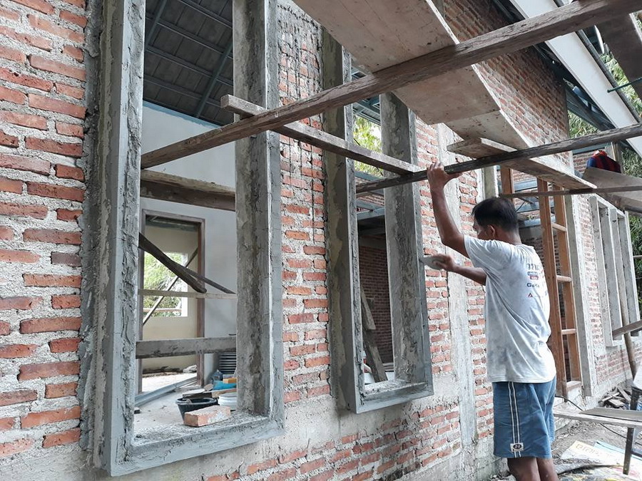 เริ่มทำการจับเฟี้ยมต่าง ๆ รอบบ้านครับ งานปูนทั้งหมด คุณพ่อผมเป็นคนทำเองทั้งหมดครับ