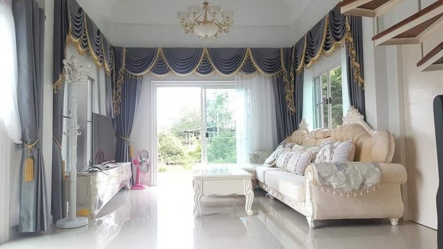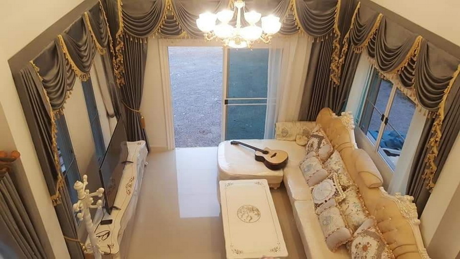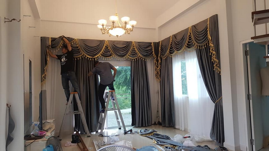 ห้องโถง เรียกช่างมาตัดผ้าม่าน ภารรยาผมชอบแบบนี้เลยจัดให้ตามใจชอบครับ
