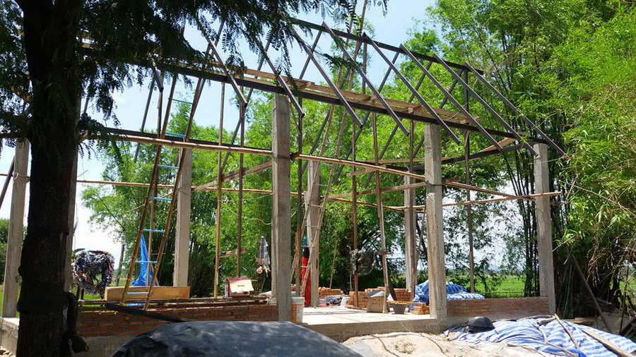 **** นั่งร้านที่ใช้ผมตัดไม้ไผ่ที่ขึ้นอยู่รอบ ๆ บ้านมาทำ ไม่มีค่าใช้จ่าย ประหยัดไปอีกครับ