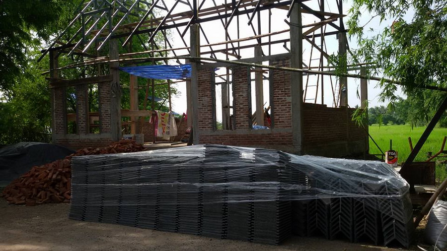 จากนั้นทำการหล่อเสาปูน และสั่งเหล็กกล่อง ขนาด 2″x4″ จากร้านวัสดุก่อสร้างแถว ๆ บ้านเช่นเคย ครั้งนี้หมดค่าเหล็กไปปรมาณ 15,000 บาท