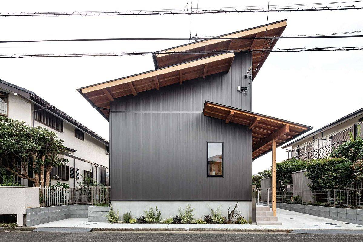 งานออกแบบหลังคาจะเป็นหลังคาทรงเพิงหมาแหงนขนาดเล็กที่จัดวางเอาไว้แบบเล่นระดับ จึงช่วยปกป้องบ้านจากฝนและแสงแดดได้หลากหลายมุม