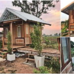 ลักษณะบ้านขนาดชั้นเดียว ออกแบบและตกแต่งด้วยสไตล์คอจเทจ ตัวบ้านเลือกใช้วัสดุจากไม้เป็นหลัก จึงให้โทนสีน้ำตาลธรรมชาติ ที่ช่วยสร้างบรรยากาศให้ดูอบอุ่น และผ่อนคลาย ในส่วนของหลังคาบ้านนั้น เลือกใช้การออกแบบด้วยหลังคารูปทรงปั้นหยา มุงด้วยกระเบื้องแบบเรียบ