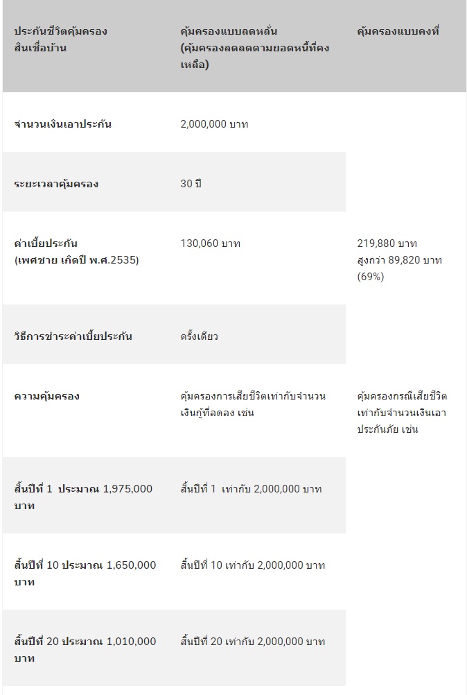 เปรียบเทียบประกันชีวิตคุ้มครองสินเชื่อบ้าน