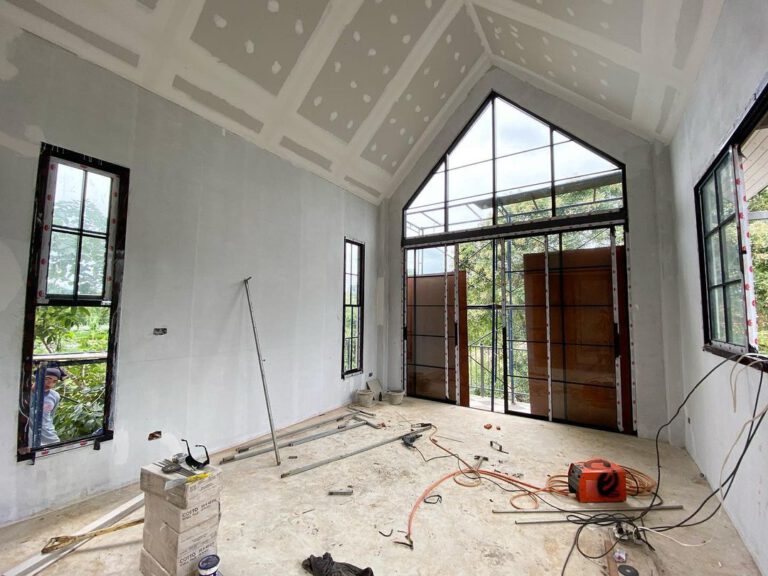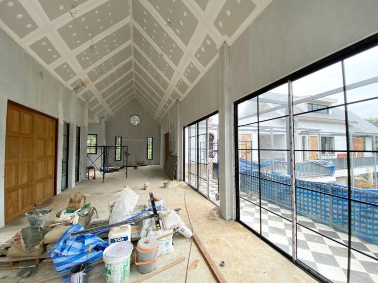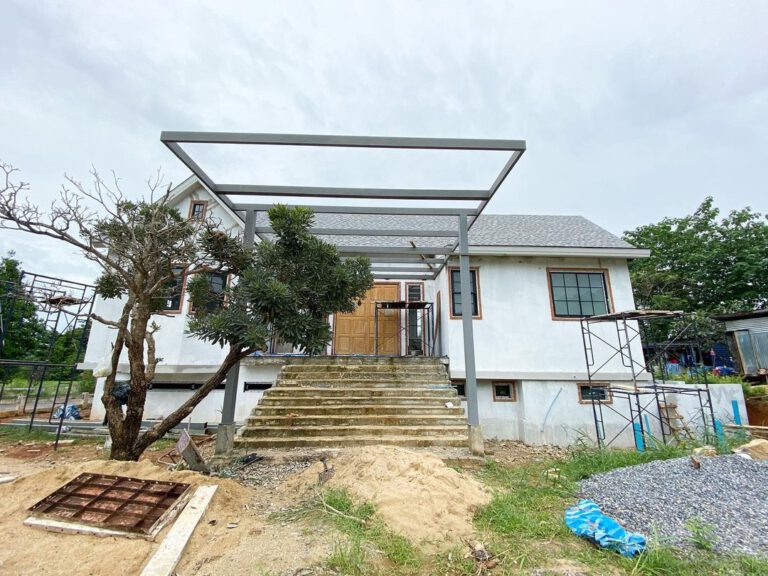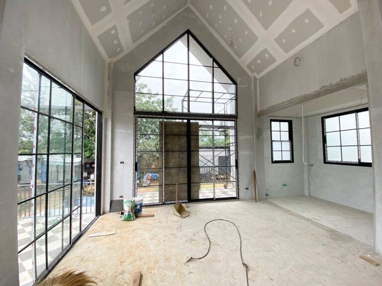 กำลังเก็บรายละเอียดการตกแต่งภายนอก ทั้งงานสี งานประตูหน้าต่างให้เรียบร้อย