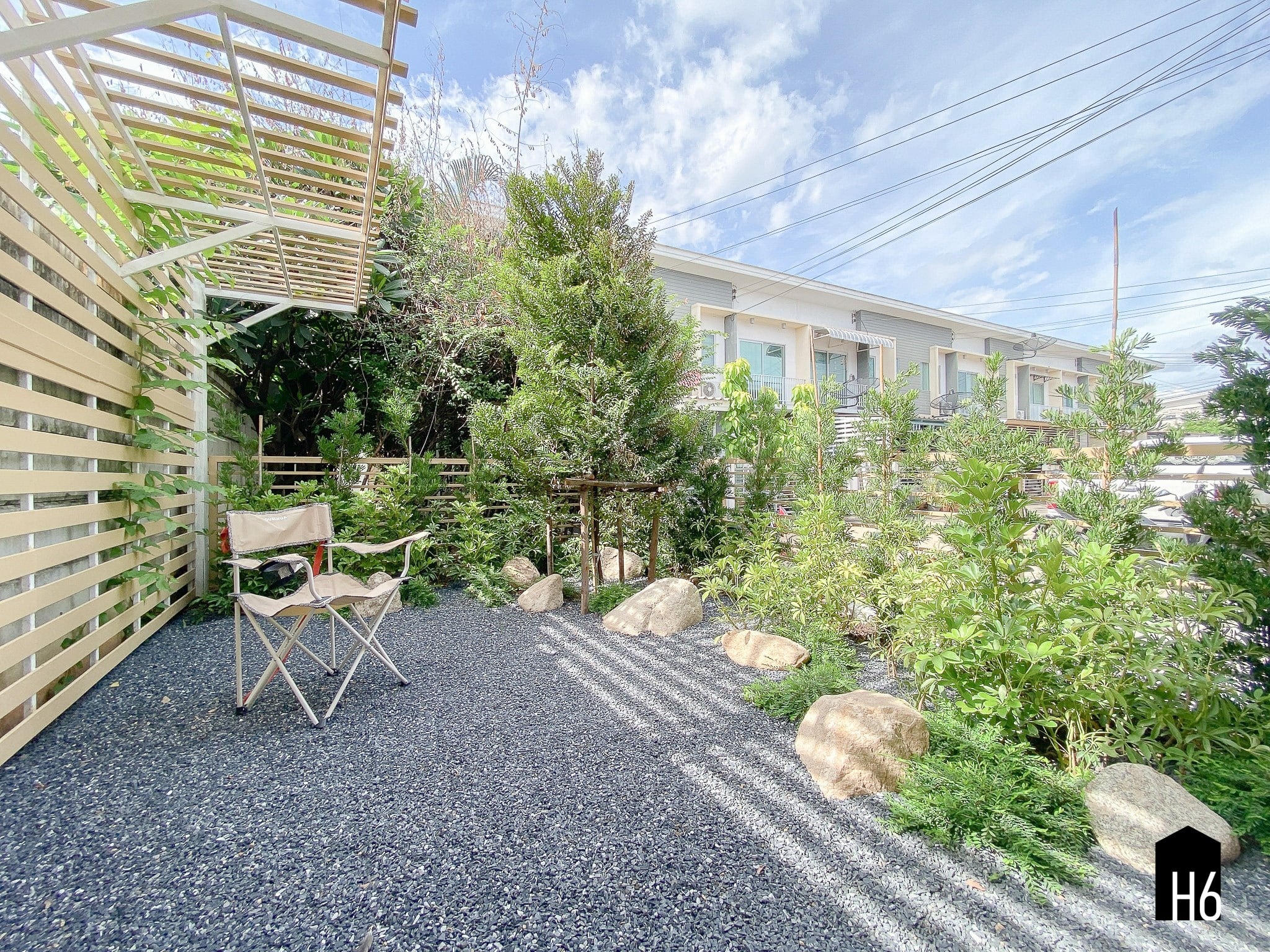 ไฮไลท์ของบ้านหลังนี้ก็คือบริเวณนี้ จากสวนรก ๆ ตอนนี้กลายเป็นสวนหินที่เลือกต้นไม้ขนาดกลางมาปลูก จึงเป็นมุมพักผ่อนสุดชิลล์อีกมุมหนึ่งของบ้าน