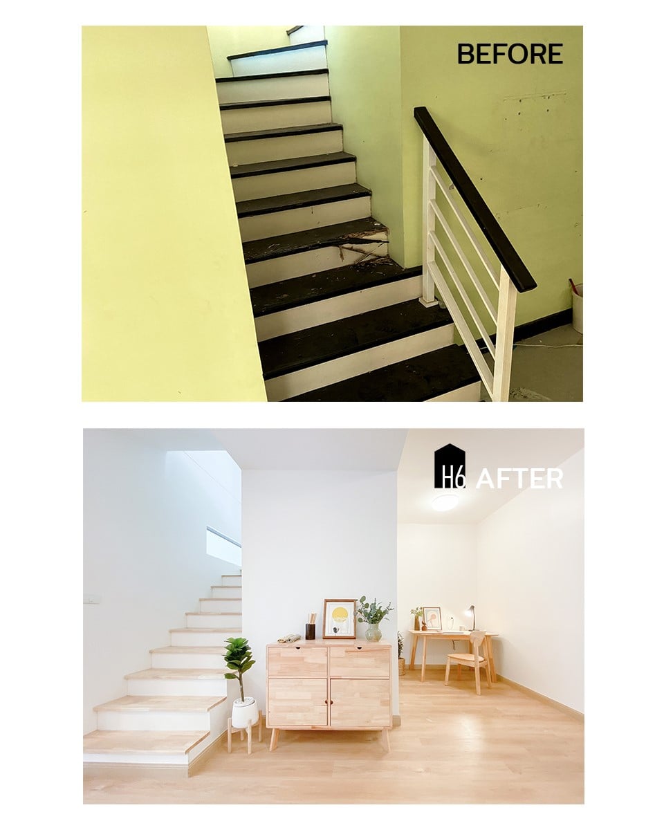 และนี่ก็คือโฉมหน้าของบ้านหลังจากผ่านการรีโนเวทไปมาด ๆ จากทาวน์เฮ้าส์เดิม ๆ ที่เก่าและมีการตกแต่งแบบร่วมสมัย มาตอนนี้กลับมาในธีมมินิมอลที่ให้บรรยากาศและโทนสีที่อบอุ่นน่าอยู่