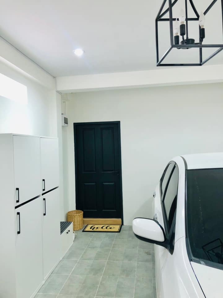 เมื่อผ่านประตูเข้ามาก็จะเป็นส่วนของที่จอดรถ ซึ่งเพียงพอสำหรับการจอดรถยนต์ 1 คัน ที่ด้านข้างจะมีตู้เก็บของเอาไว้ใช้เก็บพวกรองเท้า หรือของใช้ประจำวัน