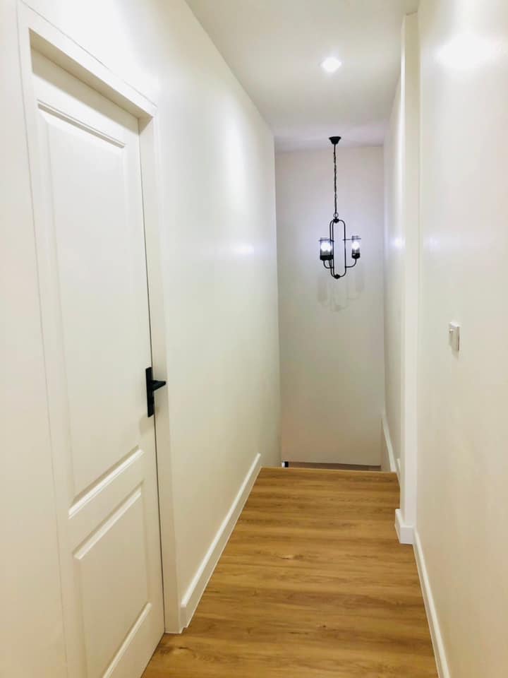 พื้นที่พักผ่อนแต่ละห้องจะมีทางเดินเชื่อมหากัน ซึ่งถ้าเราสังเกตดี ๆ จะเห็นได้ว่าภายในบ้านมีพื้นที่ค่อนข้างแคบ ดังนั้น นักตกแต่งภายในจึงเลือกใช้โทนสีขาวในการตกแต่ง ทำให้ภายในบ้านดูสว่างและมีมิติมากขึ้น ช่วยให้ลดความรู้สึกที่อึดอัดลง