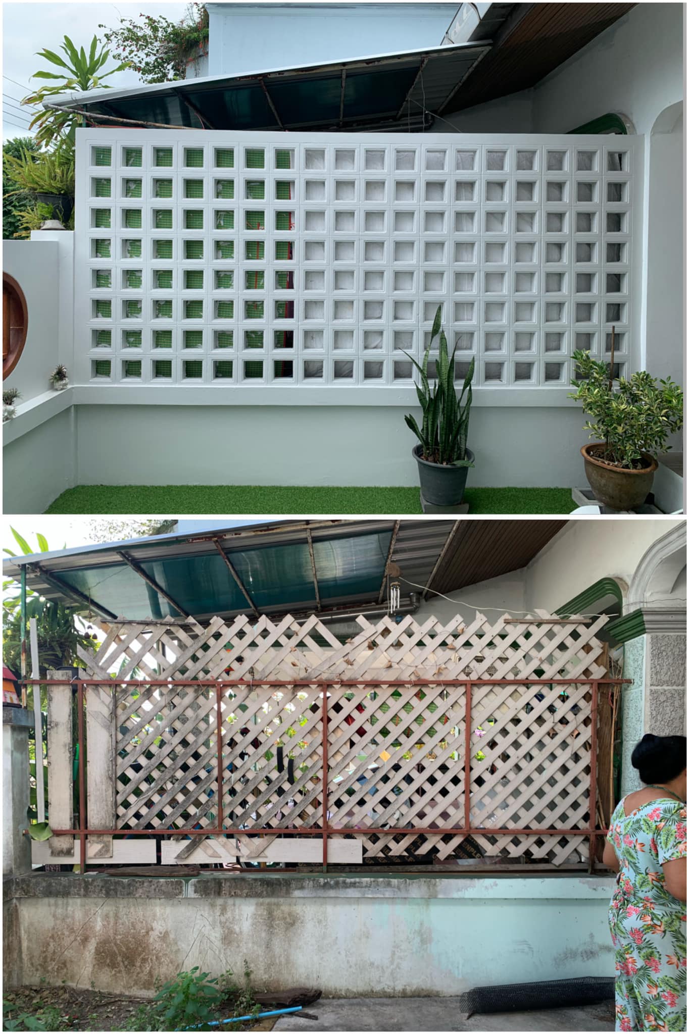รั้วด้านหน้าเปลี่ยนเป็นช่องลมวงกลม ให้ความเป็นส่วนตัวมากขึ้น