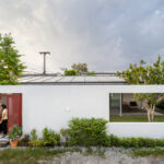 นี่คือบ้าน Casa Blanc ขนาด 2 ชั้น มุงหลังคาด้วยกระเบื้องสีเข้ม ใช้โทนสีสบายตาอย่างสีขาวครีมค่ะ