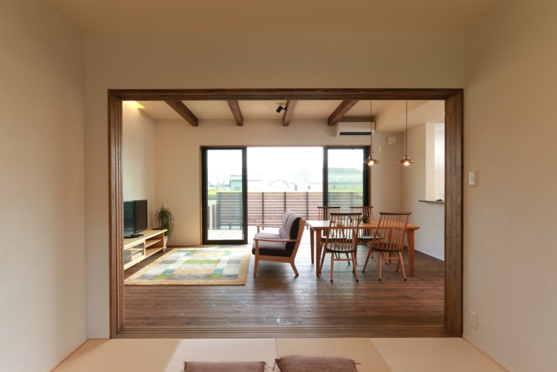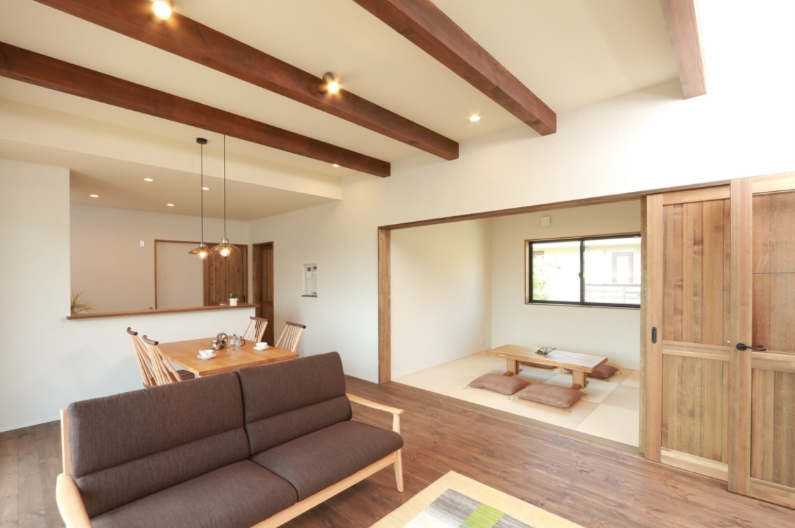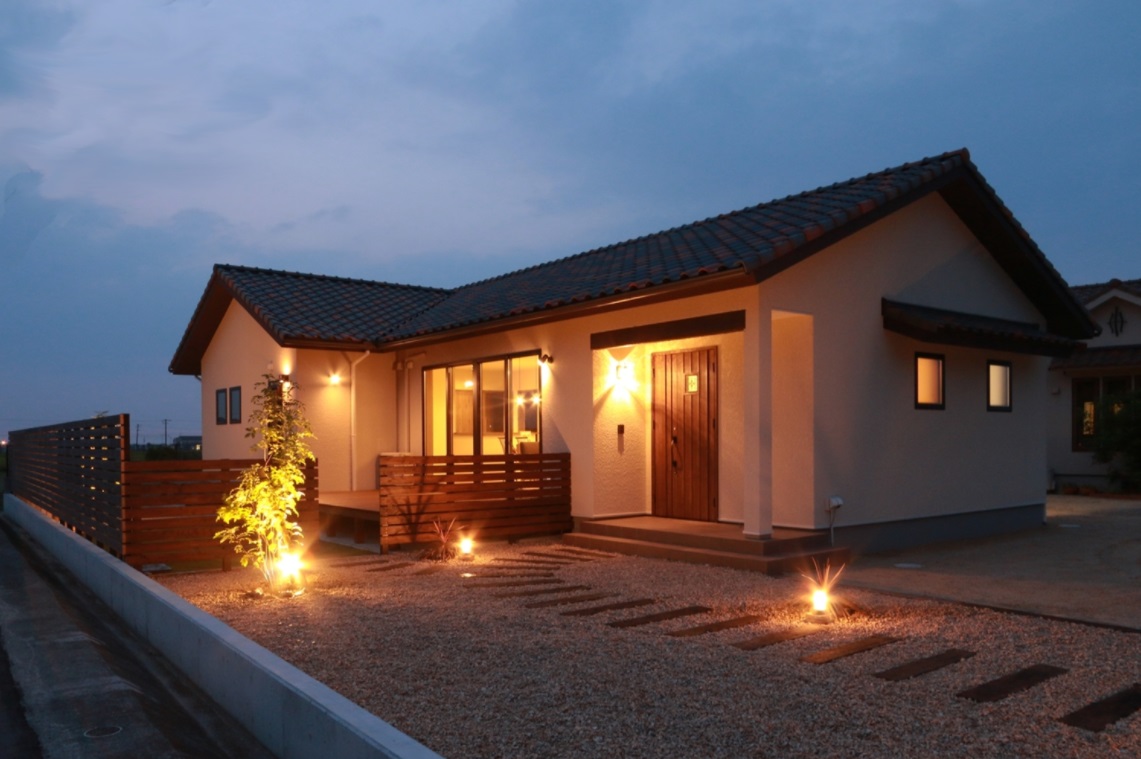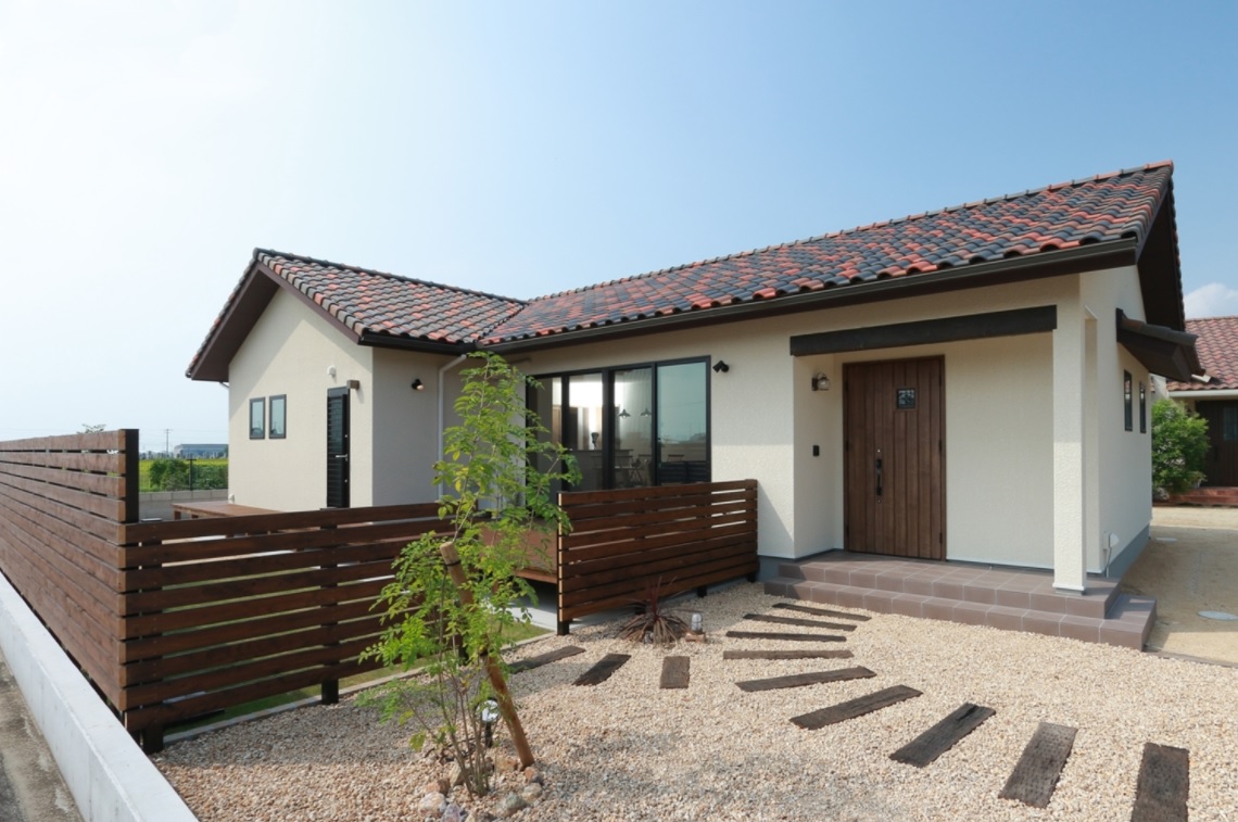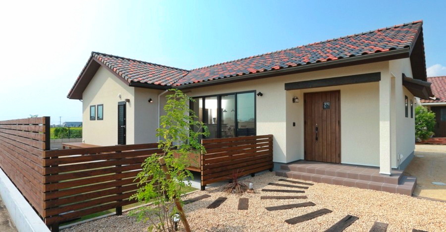 บ้านสไตล์มินิมอลหลังนี้เป้นบ้านชั้นเดียว ตัวบ้านถูกออกแบบโครงสร้างภายนอกด้วยลักษณะบ้านทั่วไปที่เราคุ้นตากันดี ซึ่งมีดีไซน์ที่เรียบง่าย มีหลังคาทรงหน้าจ่วที่มุงด้วยกระเบื้องลอนสีเข้ม ด้านนอกถูกตกแต่งด้วยสวนหินแบบญี่ปุ่นที่สะท้อนความเป็นบ้านญี่ปุ่นได้เป็นอย่างดี