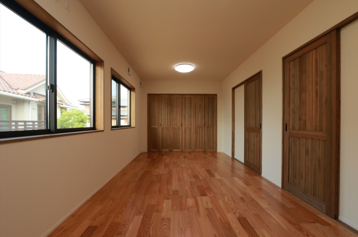 ห้องโถงบริเวณนี้ถูกปูพื้นด้วยไม้ โดยจากมุมนี้เราจะเห็นห้องต่าง ๆ ที่ถูกออกแบบประตูในแบบบานเลื่อน เพื่อเป็นการประหยัดพื้นที่เปิดปิดประตูนั่นเอง