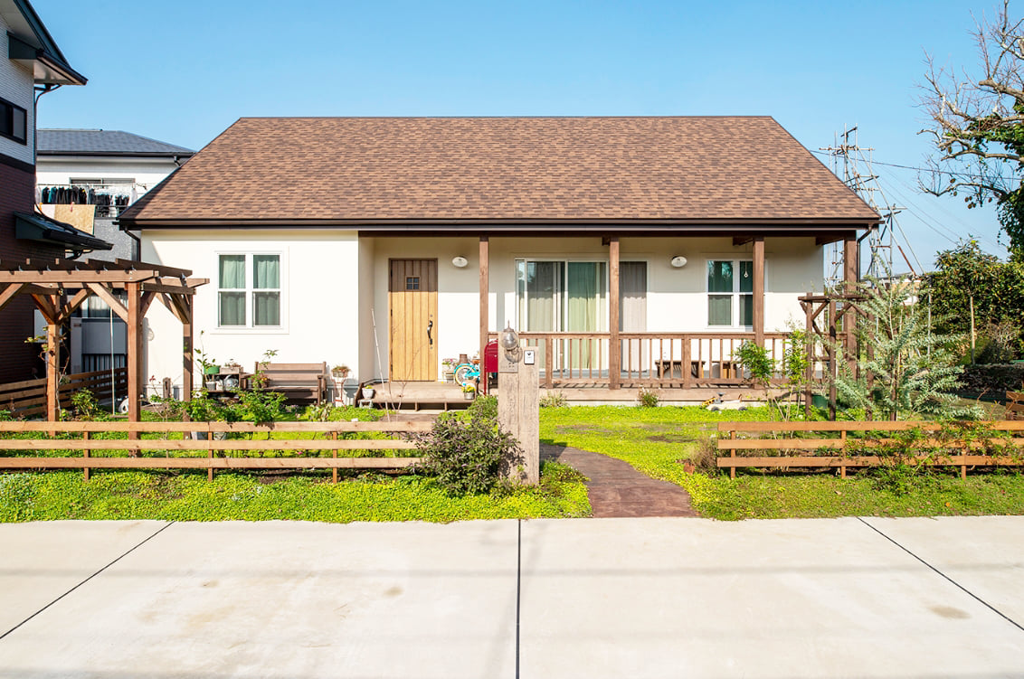 บ้านหลังนี้เป็นบ้านชั้นเดียวที่ออกแบบหน้ากว้าง ตัวบ้านมีดีไซน์ที่เรียบง่าย ตกแต่งในโทนสีที่จับคู่กันระหว่างสีครีมและสีน้ำตาล จึงทำให้บ้านมีบรรยากาศที่อบอุ่น หน้าบ้านยังตกแต่งให้เป็นพื้นที่สนามหญ้าและสวนเล็ก ๆ ที่ให้ความสวยงามสดชื่น