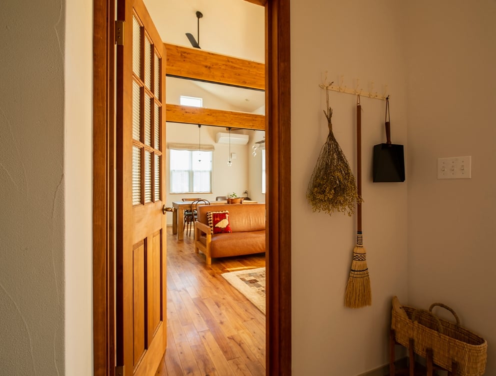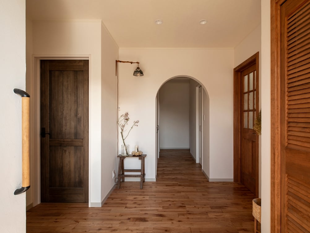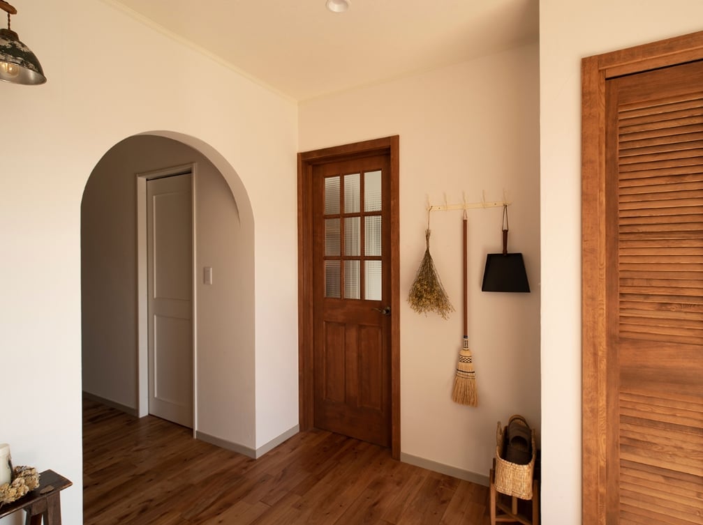 เมื่อเราเข้ามาภายในบ้าน ก็จะพบการออกแบบที่ให้กลิ่นอายบ้านยุโรปผ่านการออกแบบซุ้มทรงโค้ง โดยองค์ประกอบอื่น ๆ ยังคงคุมโทนสีครีมและน้ำตาลเอาไว้
