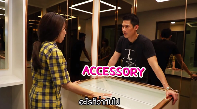 เดินขึ้นมาบนชั้นสอง จะเป็นห้อง Walk-in Closet ของสาวพลอยโดยเฉพาะ มีขนาดที่กว้างขวางใหญ่โต ประกอบไปด้วยตู้เก็บกระเป๋า เสื้อผ้า เครื่องประดับ และเครื่องสำอางมากมาย