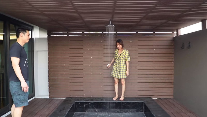 ที่เด็ดไปกว่านั้นก็คือ ห้องอาบน้ำเอาท์ดอร์ของสาวพลอย ที่เจ้าตัวนั้นปลาบปลื้มชื่นชอบเป็นอย่างมาก เนื่องจากให้ฟีลเหมือนกับอาบน้ำในโรงแรม มีระแนงไม้สำหรับนั่งชมวิว มีต้นไม้เล็กน้อยพอสดชื่น ซึ่งหนุ่มกันต์บอกว่าโซนนี้ใช้งบไปทั้งหมดเกือบล้านบาทเลยทีเดียว