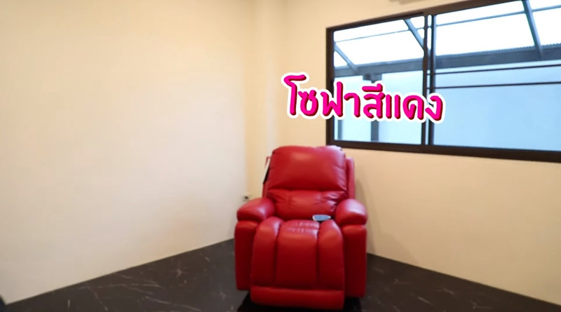 นอกจากนี้ยังมีโซฟาหนังสีแดงขนาดใหญ่สำหรับนั่งเอนหลังหรืองีบหลับอีกด้วย