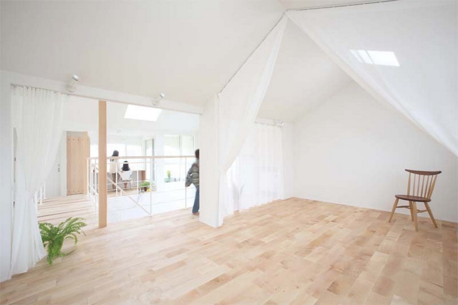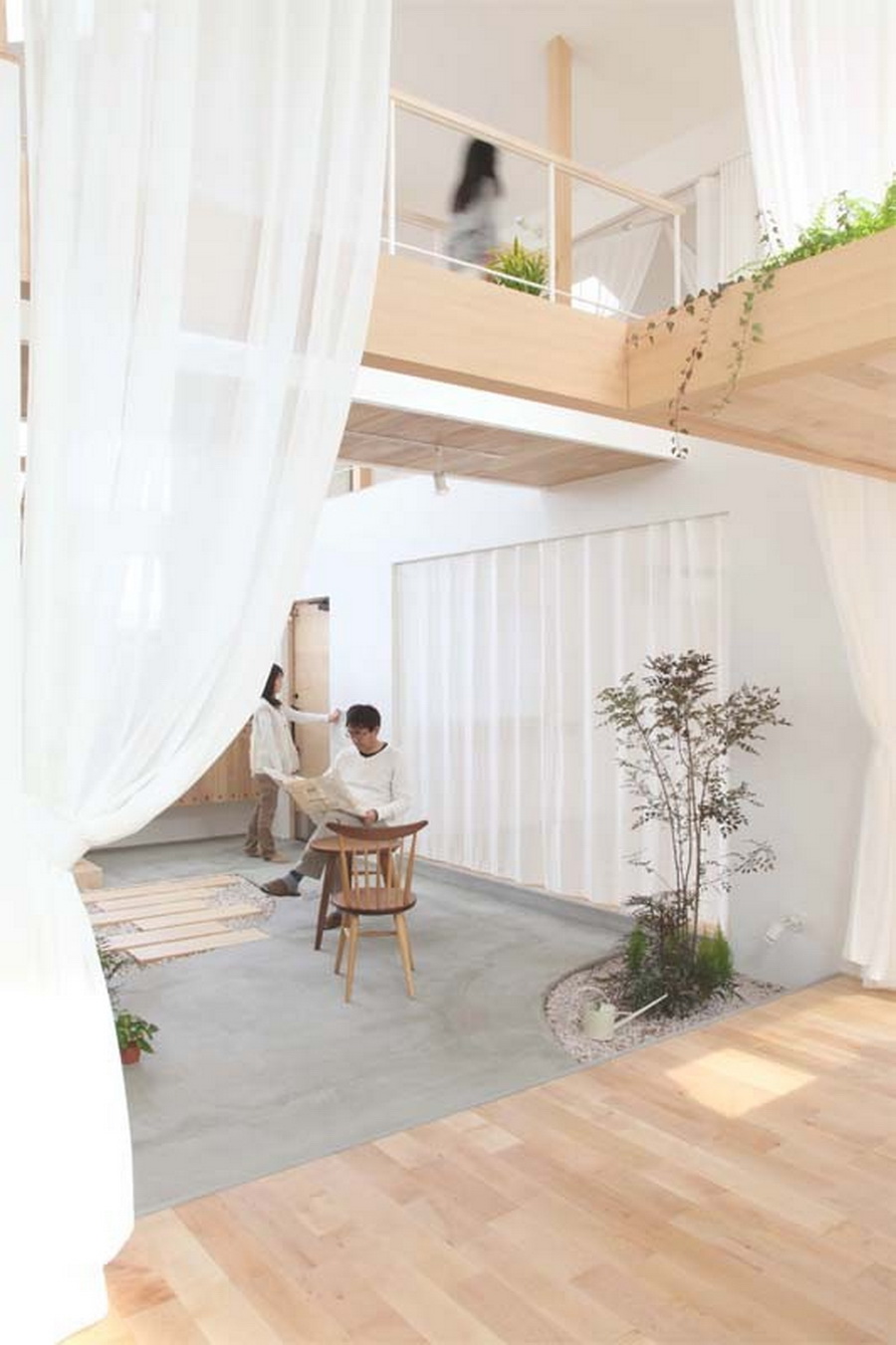 พื้นที่ด้านในแบ่งสันส่วนโดยไร้ผนังกั้น (open plan) ให้ความรู้สึกเป็นอันหนึ่งอันเดียวกัน แต่หากต้องการความเป็นส่วนตัวก็สามารถดึงผ้าม่านสีขาวแบ่งกั้นขอบเขตได้