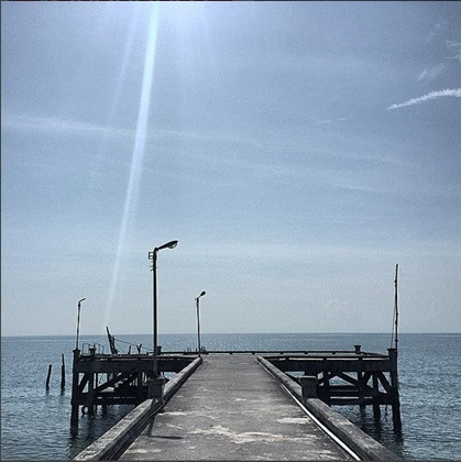 สะพานท่าเรือที่ทอดยาวสู่ทะเล