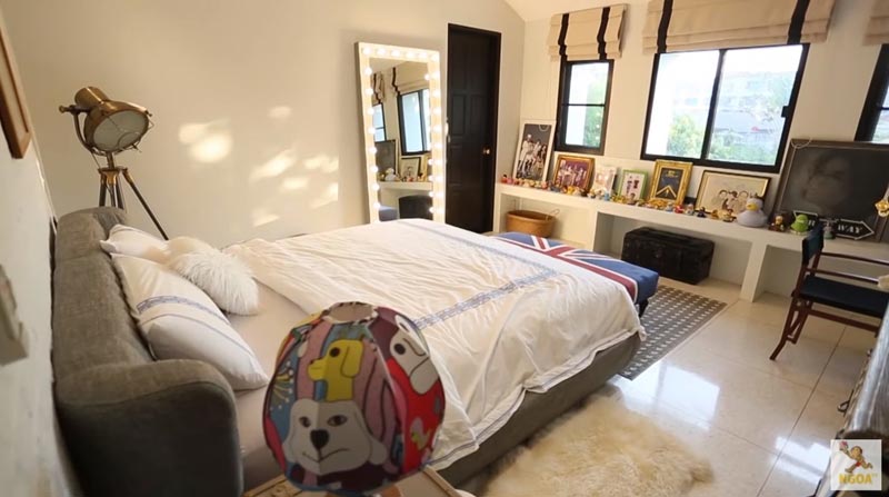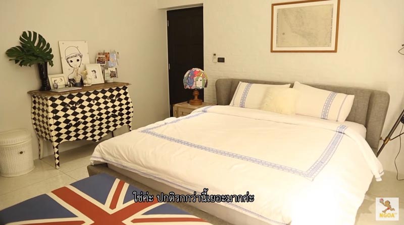 มาถึงห้องนอนของสาวก้อย ซึ่งมีขนาดไม่ใหญ่มาก แต่ลงตัวทุกองค์ประกอบทั้งดีไซน์และการตกแต่ง ประดับไปด้วยถ้วยรางวัลวิ่งและตุ๊กตาเป็ด ซึ่งเป็นของสะสมที่หนุ่มตูนชอบซื้อมาฝากนั่นเองครับ