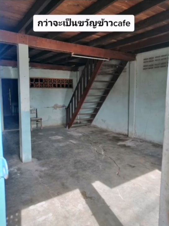 พื้นที่ชั้นล่างจะมีลักษณะที่กว้าง โปร่งสบาย เพดานก็อยู่สูง ทำให้มีศักยภาพที่เหมาะกับการนำมาทำเป็นคาเฟ่นั่นเอง