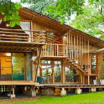 ลักษณะบ้านขนาดสองชั้น ตัวบ้านออกแบบโครงสร้างจากไม้ธรรมชาติทั้งหลัง นอกจากนี้ยังออกแบบยกใต้ถุนสูง ผนังบ้านยังเป็นลักษณะแผ่นไม้ติดเว้นช่อง ช่วยให้ลมโกรกสบาย หลังคาของบ้านเป็นรูปทรงหน้าจั่วสองชั้น ตัวหลังคามุงด้วยกระเบื้องดินเผาแบบเรียบ