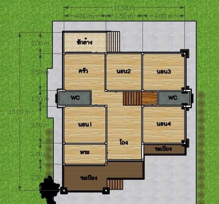 แบบบ้านสไตล์ล้านนนาประยุกต์หลังนี้ประกอบไปด้วย 4 ห้องนอน 2 ห้องน้ำ 1 ห้องโถงนั่งเล่น 1 ห้องครัว 1 ห้องพระ 1 ลานซักล้าง พร้อมระเบียงหน้าบ้านและที่จอดรถแบบบ้านสำเร็จราคา 3,900 บาท
