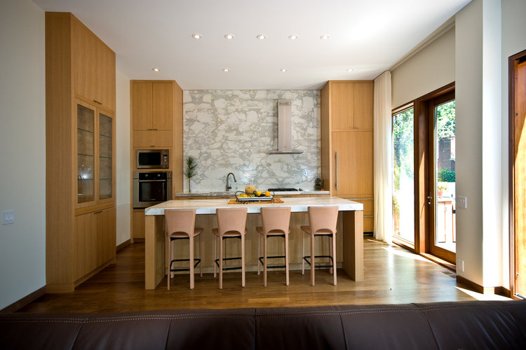 ภายในมุมจากห้องครัว เราจะเห็นการตกแต่งองค์ประกอบต่าง ๆ ด้วยงานไม้ไปทั่วทุกมุม จึงให้บรรยากาศที่ดูอบอุ่นน่าอยู่ไม่น้อยเลย