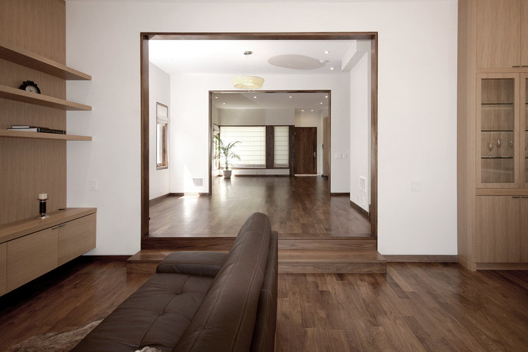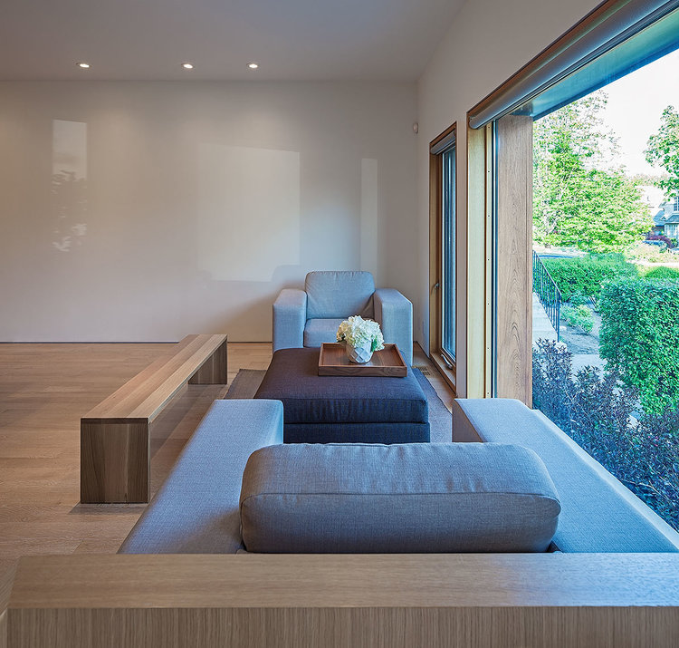 หรือถ้าหากอยากจะพักผ่อนหย่อนใจในร่ม ภายในบ้านเองก็มีห้องนั่งเล่นที่มีผนังเป็นกระจกใส เราจึงสามารถพักผ่อนใต้ชายคาบ้าน ขณะเดียวกันก็ยงสามารถสัมผัสธรรมชาติภายนอกได้อีกด้วย