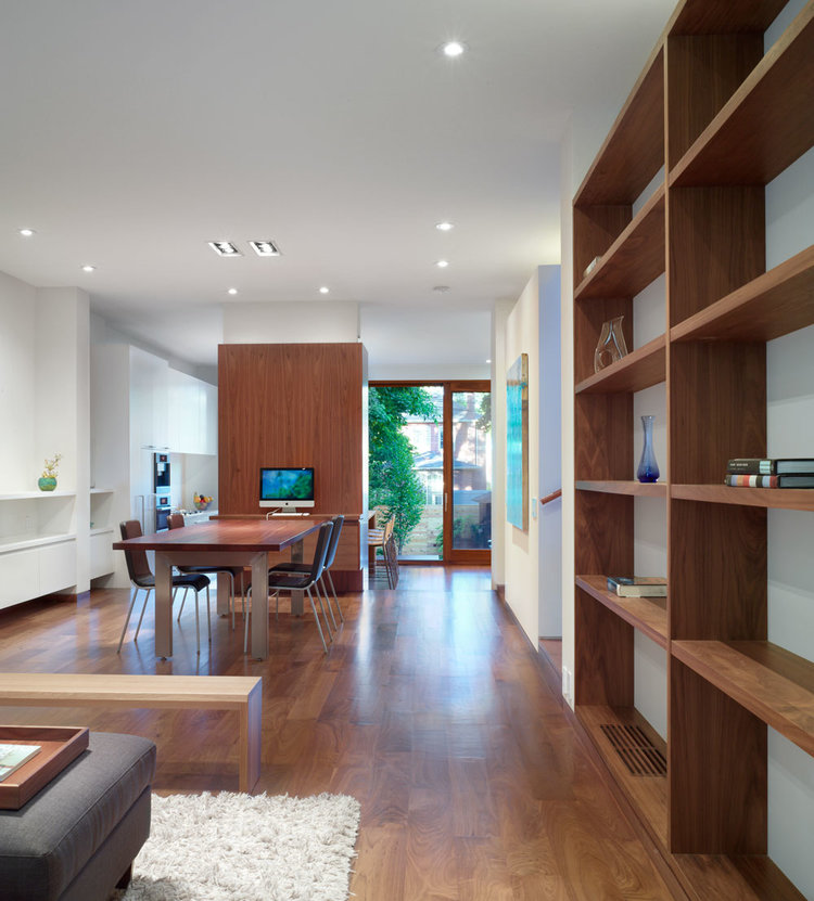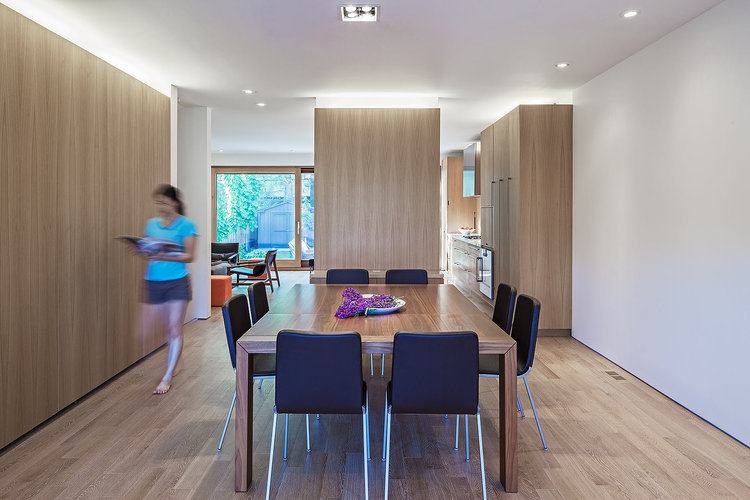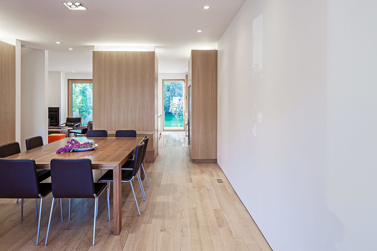 ภายในพื้นที่ห้องรับประทานอาหารก็ยังคงมีบรรยากาศจากงานไม้ โดยโต๊ะรับประทานอาหารจะมีขนาดใหญ่เป็นพิเศษ เพื่อรองรับสมาชิกครอบครัว