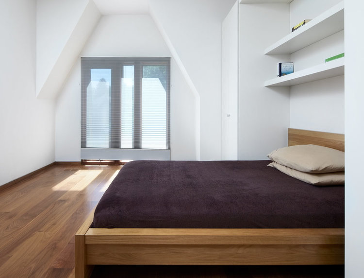 ภายในห้องนอนเองก็ยังคงธีมการตกแต่งด้วยงานไม้เอาไว้ได้เป็นอย่างดี แต่ก็เพิ่มเติมในส่วนของผนังห้องที่เป็นสีขาว เพื่อให้ห้องมีบรรยากาศที่สดชื่นมากขึ้น