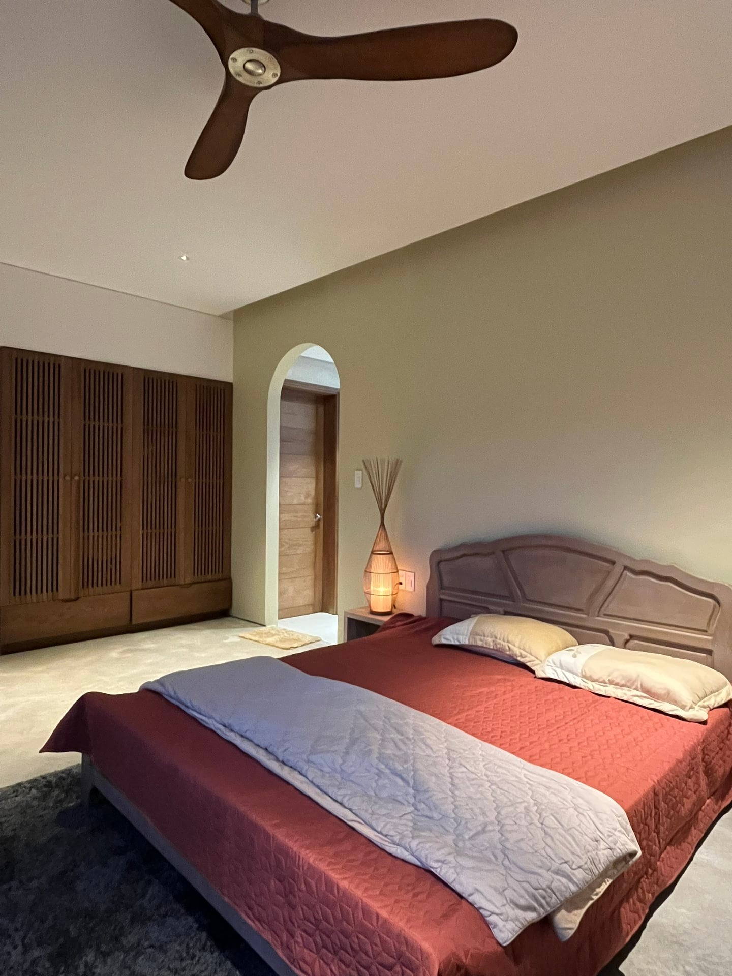ห้องนอนจะตั้งอยู่ที่ด้านหนึ่งของบ่อน้ำ นั่นจึงทำให้ภายในห้องจะมองเห็นวิวที่สวยงามของบ่อน้ำและต้นไม้ ทั้งยังสามารถรับลมและแสงธรรมชาติผ่านทางผนังด้านนี้ได้อีกด้วย