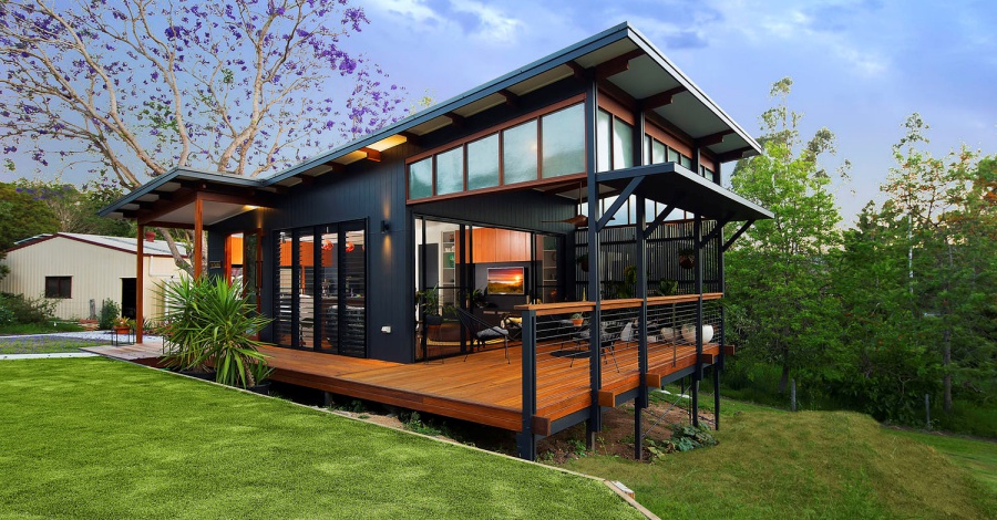 วันนี้ ในบ้าน ก็มีอีกหนึ่งตัวอย่าง LINCOLN MINI บ้านตากอากาศสไตล์โมเดิร์น มาให้เพื่อนๆ ได้ชมกันค่ะ มีลักษณะเป็นบ้านชั้นเดียวรูปทรงตัวยู โครงสร้างบ้านประกอบขึ้นจากเหล็กและไม้ การตกแต่งภายนอกเลือกใช้โทนสีดำให้บรรยากาศสุขุมเงียบสงบ