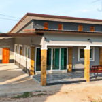 ตัวบ้านยกพื้นสูงมีขนาด 60 ตารางเมตร ใต้ถุนไร้ผนังปิดกั้นช่วยในการถ่ายเทความร้อน ปกคลุมด้วยหลังคาเพิงหมาแหงน แสดงให้เห็นถึงรูปลักษณ์ทันสมัยตามสไตล์บ้านโมเดิร์น โอบล้อมรอบนอกด้วยเฉลียงไม้สีสดปูยาวตลอดแนวบ้าน จัดเป็นสำหรับนั่งเล่นรับลมชิลล์ๆ ระหว่างวัน