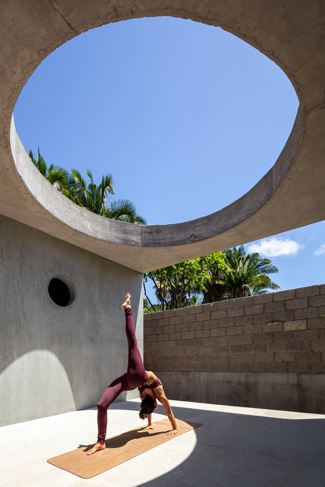 มาถึงส่วนตรงกลางของบ้าน ซึ่งเป็นไฮไลท์ของการออกแบบบ้านหลังนี้ โดยจะเป็นลานโล่ง ๆ ที่ด้านบนมีเพดานรูปวงกลมแบบเปิดโล่ง