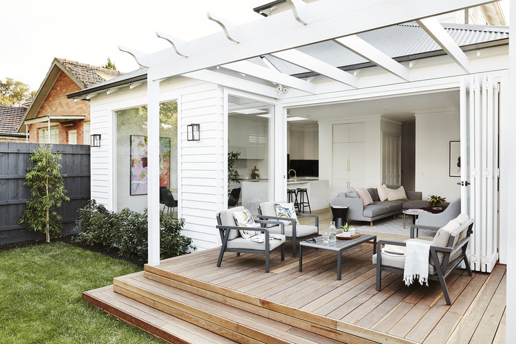 สำหรับใครที่ชอบบรรยากาศกลางแจ้ง บริเวณหลังบ้านก็จะมีพื้นที่เฉลียงไม้ที่ต่อเติมยื่นออกมา ซึ่งใช้เป็นมุมพักผ่อน หรือสังสรรค์ได้เป็นอย่างดีเลย
