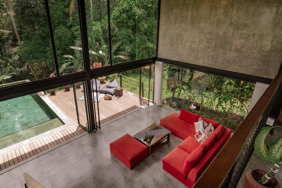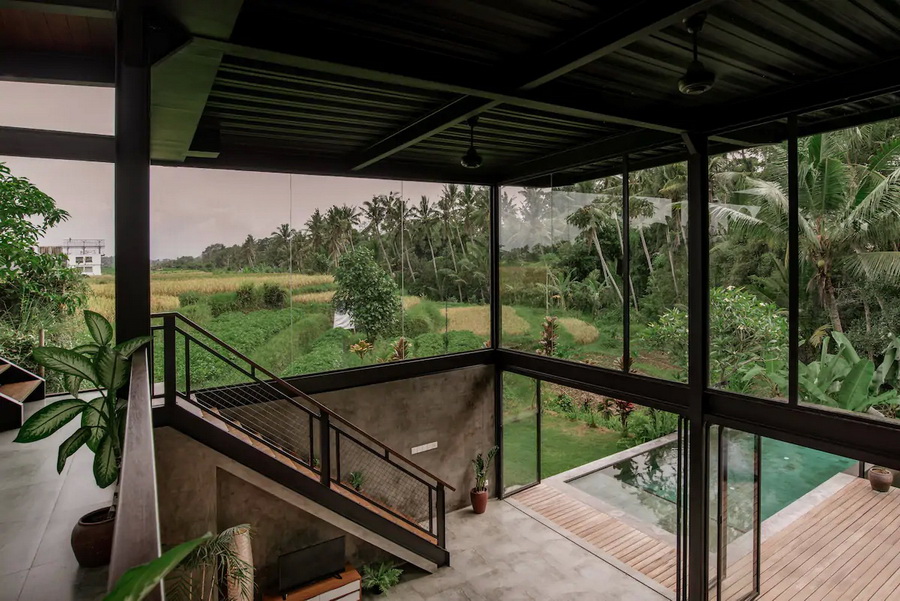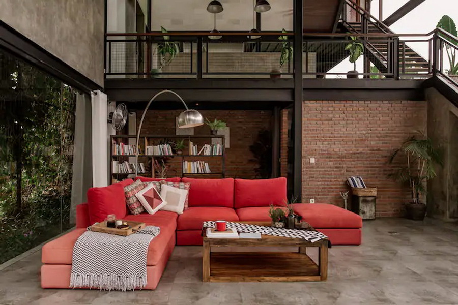 Lush Deluxe Jungle Loft Villa เป็นบ้านของคุณ Risyiana เป็นบ้านพักจาก Air BNB โดยบ้านหลังนี้เป็นบ้านหลังใหญ่ที่มีดีไซน์แบบโมเดิร์นลอฟท์ ให้โทนสีดำ-น้ำตาลที่กลมกลืนไปกับธรรมชาติโดยรอบ ตัวบ้านถูกโอบล้อมด้วยป่าและทุ่งนา จึงให้บรรยากาศที่เป็นธรรมชาติ
