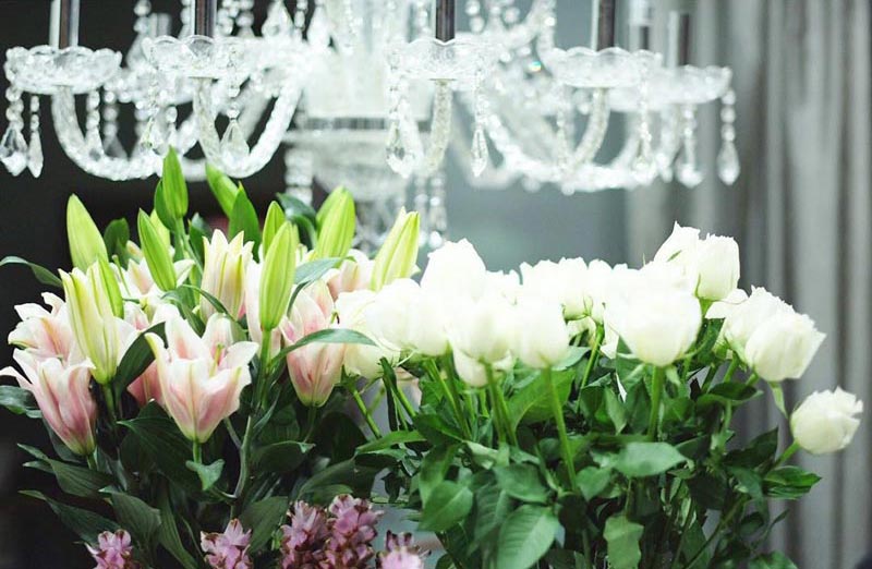ตกแต่งบ้านด้วยดอกไม้สดมากมาย สดชื่นและดูหรูหรามาก