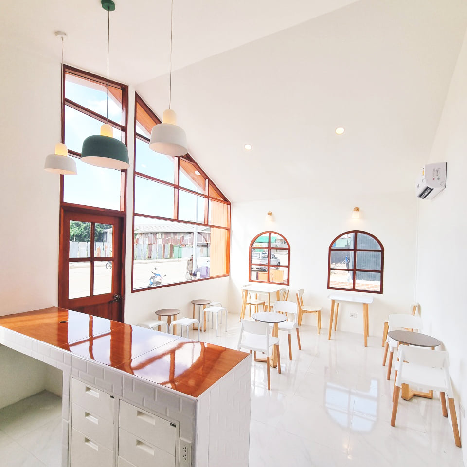 นอกจากโทนสีขาวแล้ว ในองค์ประกอบส่วนอื่น ๆ ของอาคารจะถูกตกแต่งด้วยงานไม้โทนสีน้ำตาล ที่ช่วยทำให้ภายนอกของคาเฟ่ดูมีสีสันและมีเสน่ห์ยิ่งขึ้น