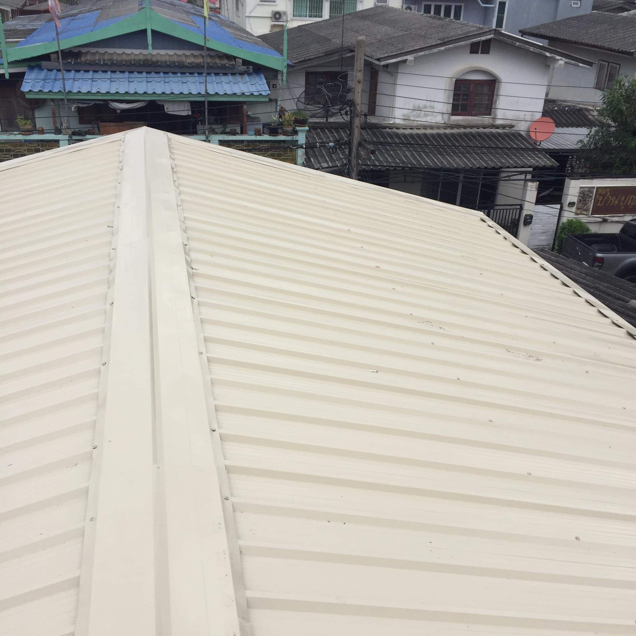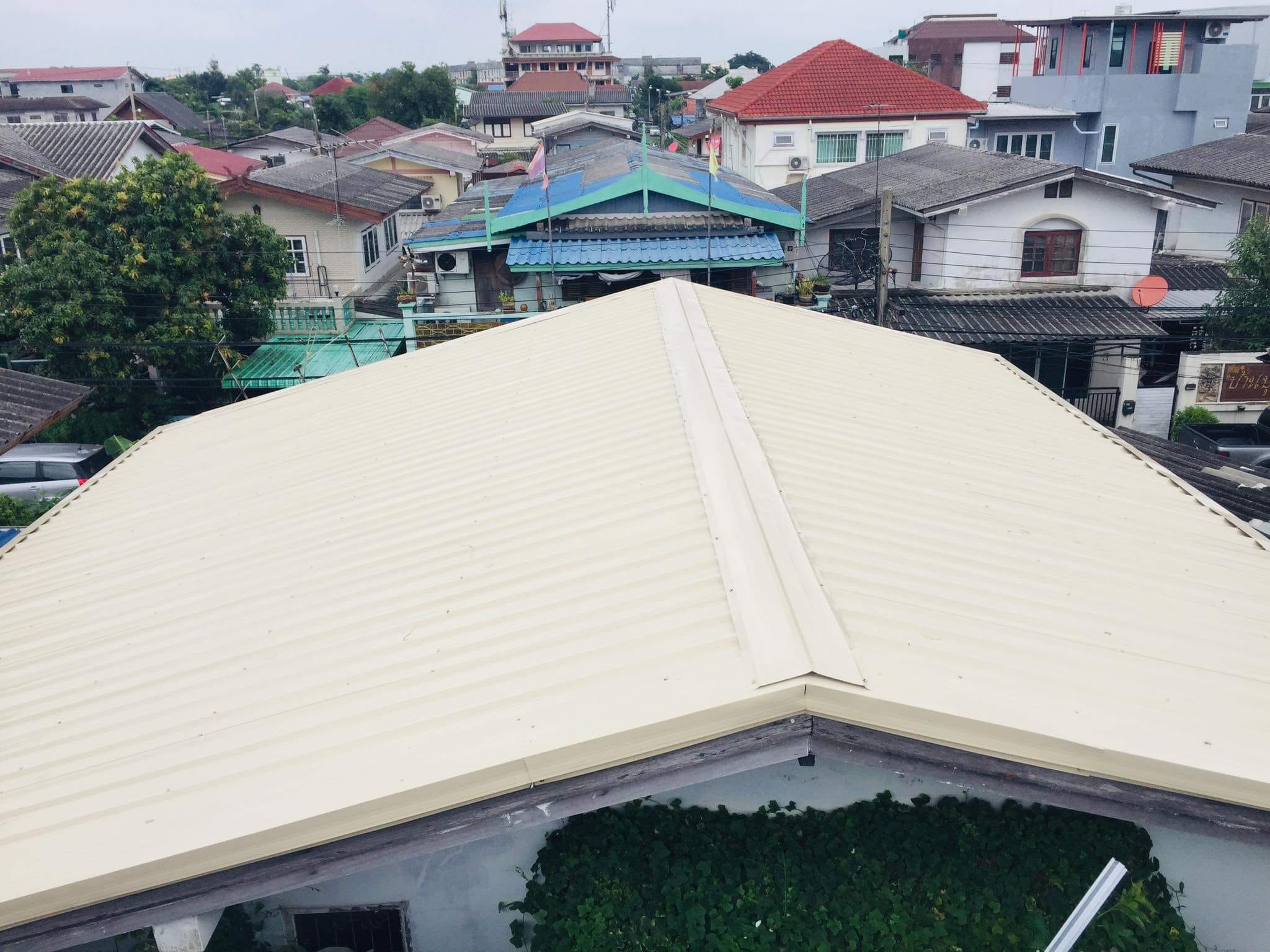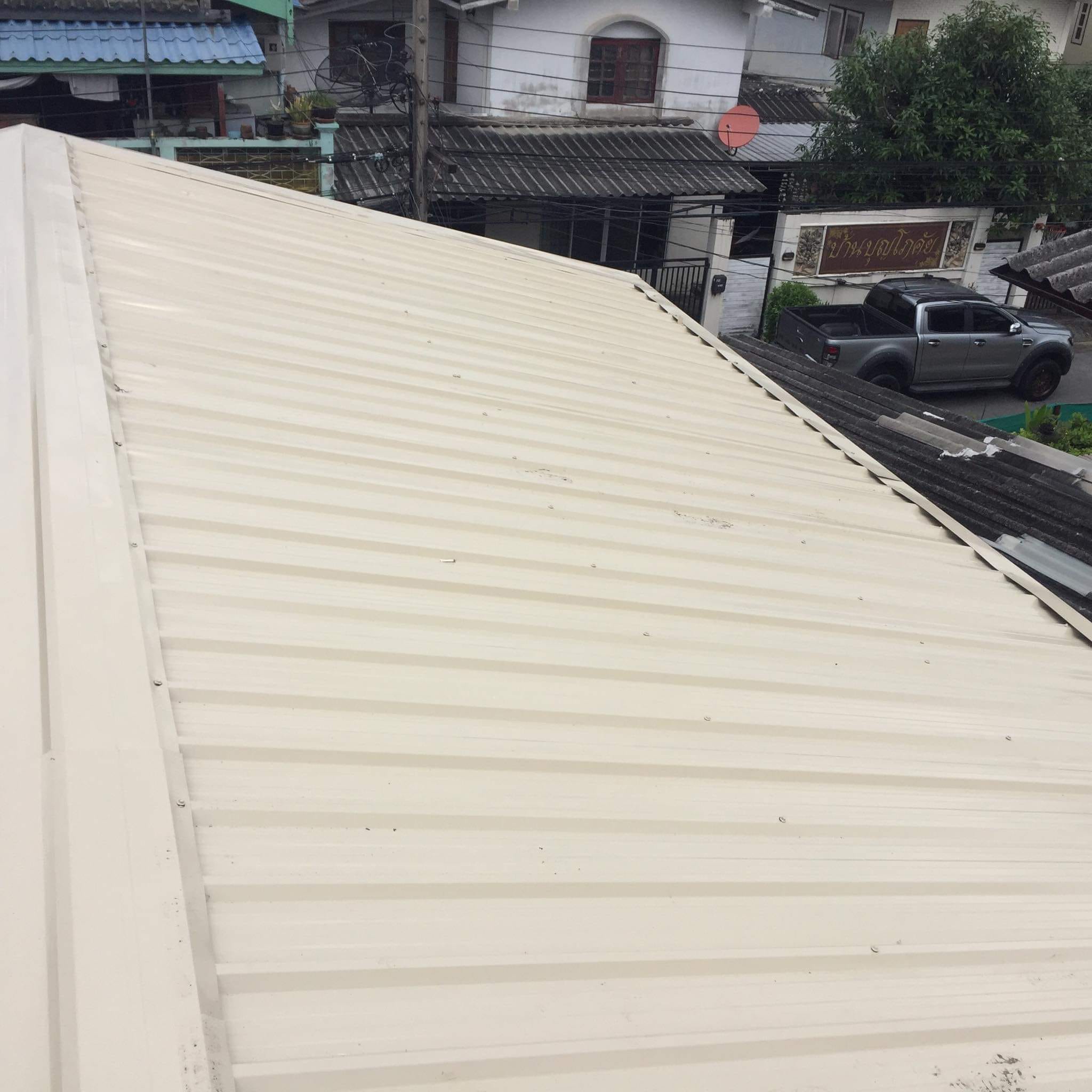 และนี่ก็คือผลงานหลังจากที่ช่างได้มุงเมทัลชีททับหลังคาเก่าจนทั่ว นอกจากจะช่วยอุดทุกรอยรั่วแล้ว ยังทำให้บ้านของเราดูโดดเด่นขึ้นอีกด้วย