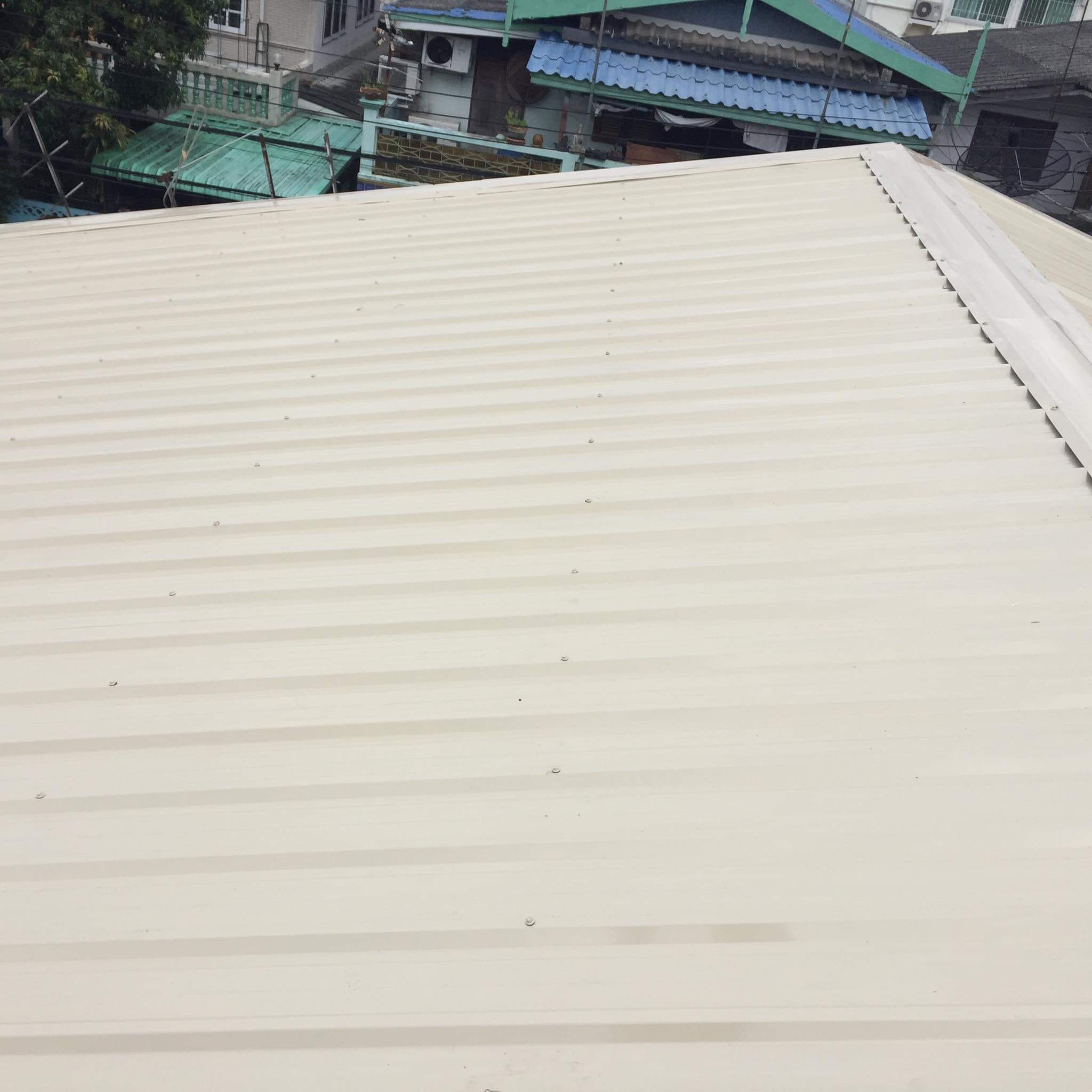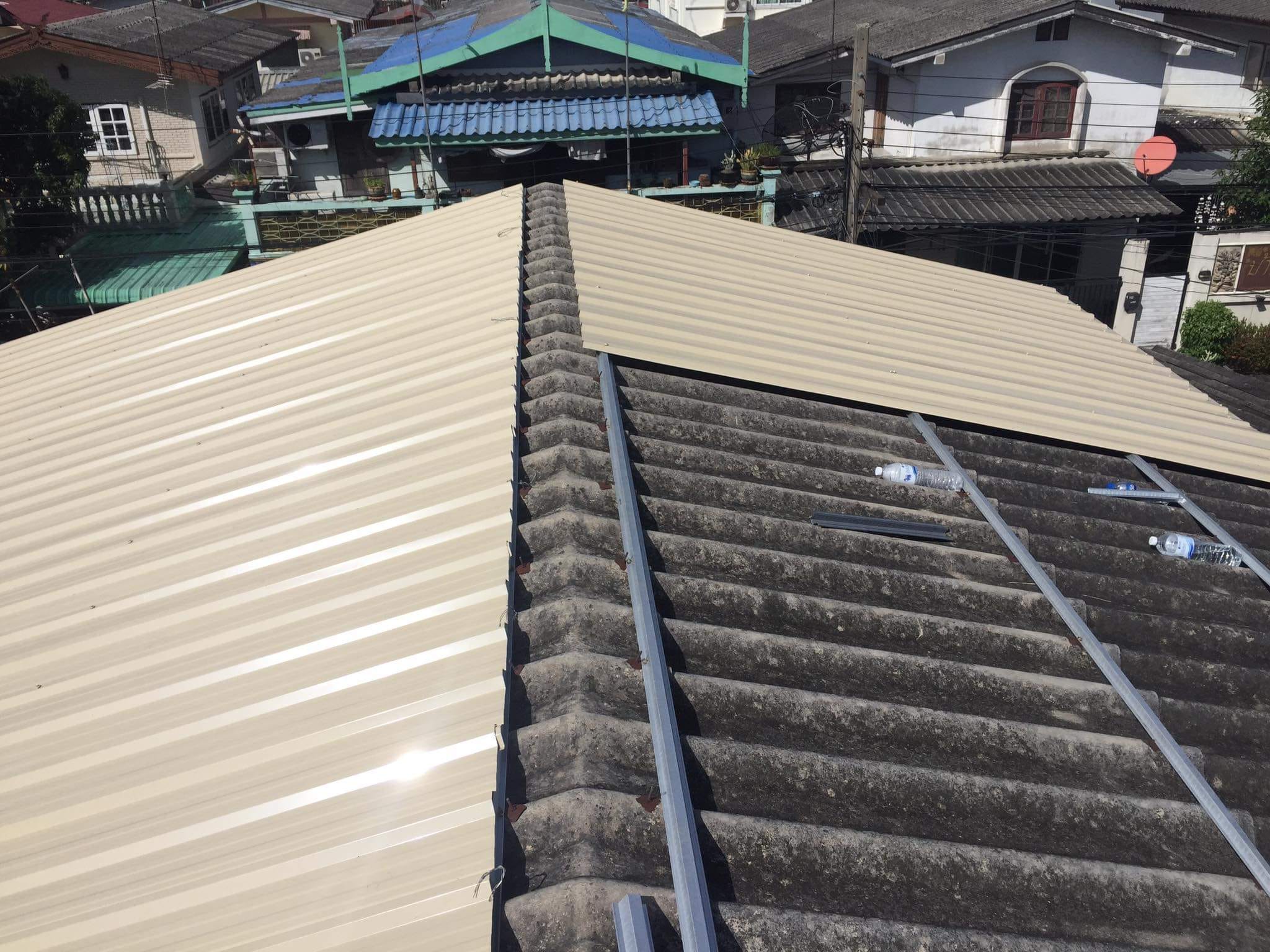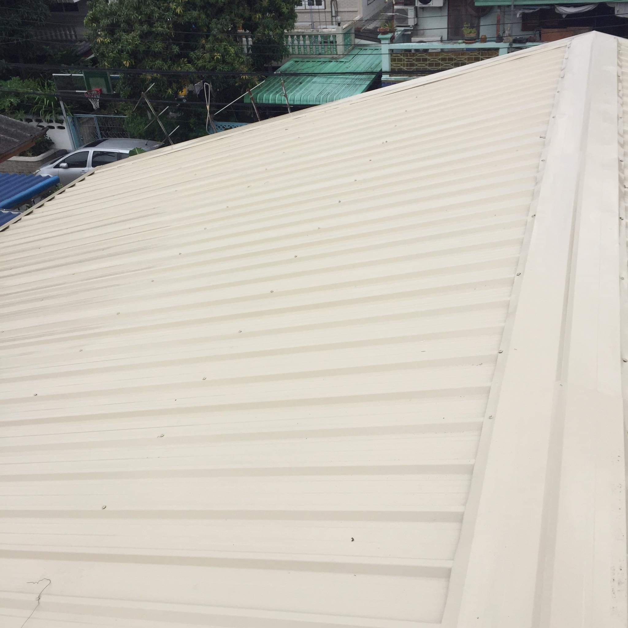 และนี่ก็คือผลงานหลังจากที่ช่างได้มุงเมทัลชีททับหลังคาเก่าจนทั่ว นอกจากจะช่วยอุดทุกรอยรั่วแล้ว ยังทำให้บ้านของเราดูโดดเด่นขึ้นอีกด้วย