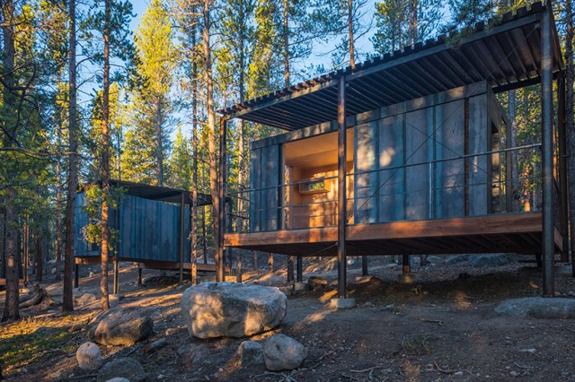 ออกแบบบ้านขนาดเล็กๆ ใช้โครงสร้างเหล็ก ออกแบบรูปทรงสี่เหลี่ยม หลังคาเพิงหมาแหงนลาดเอียงเล็กน้อยพองาม เน้นความสมัยใหม่ได้ดีเยี่ยม ยกพื้นให้มีเสาลอย ดูโปร่งเบาไปในตัว