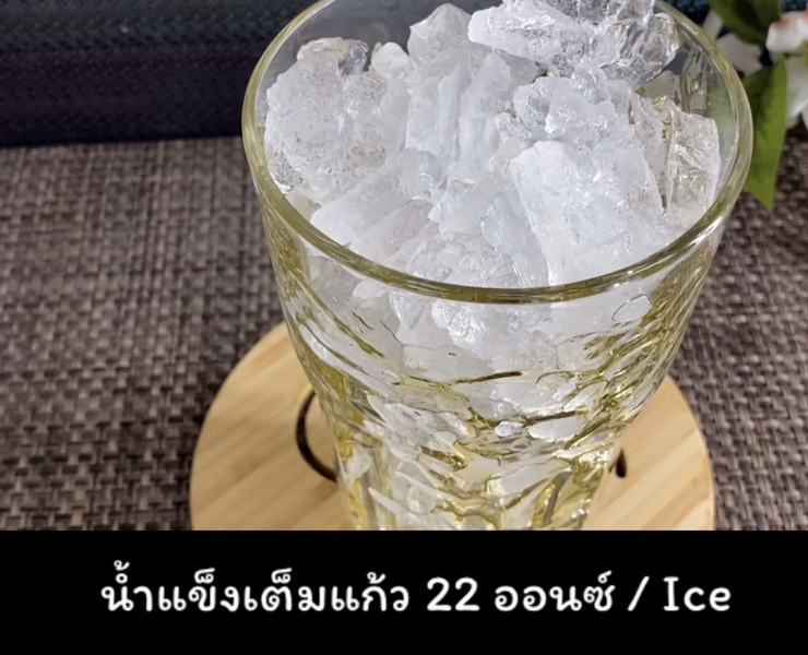 4. ตักน้ำแข็งใส่เต็มแก้ว ราดนมที่ผสมไว้ลงไป