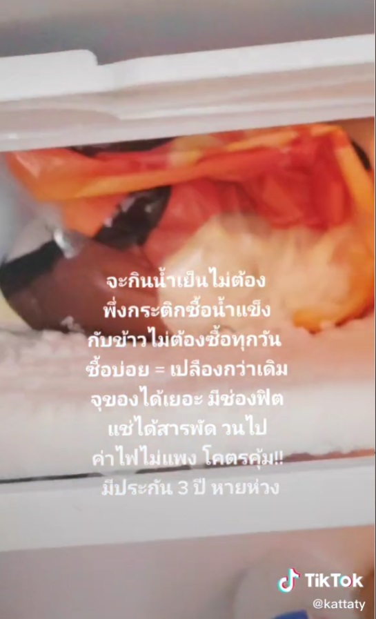 ทำให้ล่าสุด ผู้ใช้บัญชีติ๊กต่อก @kattaty ได้โพสต์คลิปรีวิวตู้เย็นขนาดเล็ก ที่เหมาะกับชาวหอพักมาก สามารถแช่น้ำได้กำลังดี ขนย้ายก็สะดวกสุด ๆ