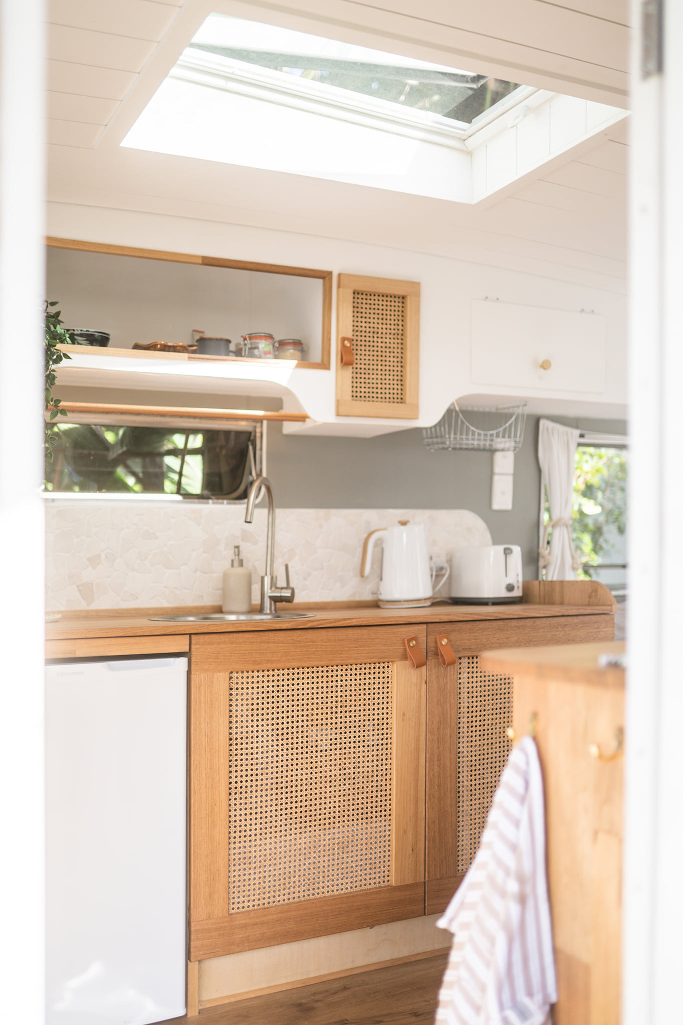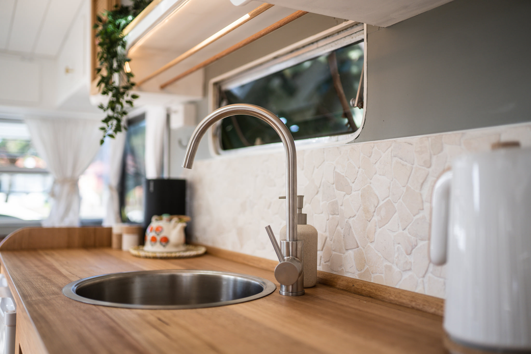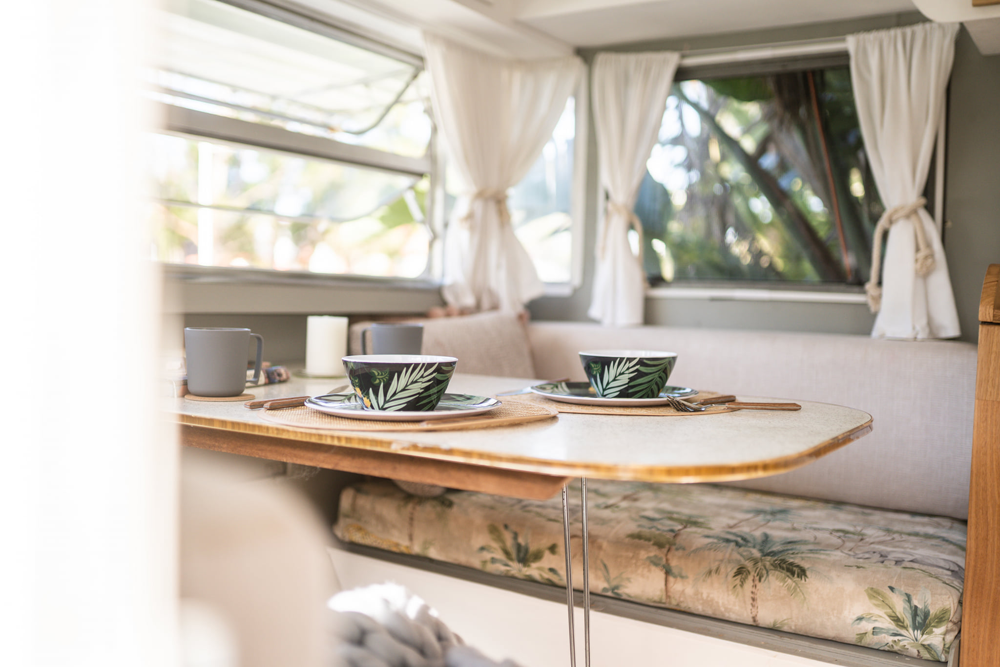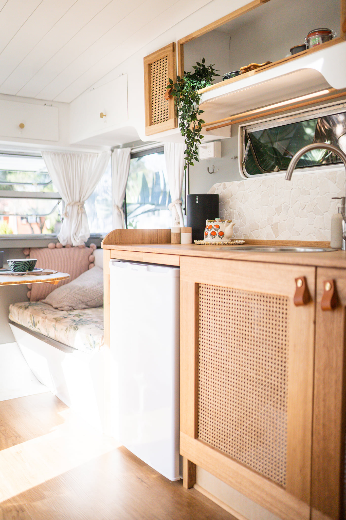 ภายในรถบ้าน จะมีพื้นที่ใช้สอยที่กำลังดี โดยเจ้าของบ้านตกแต่งภายในด้วยสไตล์แบบมินิมอล เน้นโทนสีอ่อนที่ให้บรรยากาศที่ผ่อนคลาย ช่วยลดความอึดอัดได้ดี