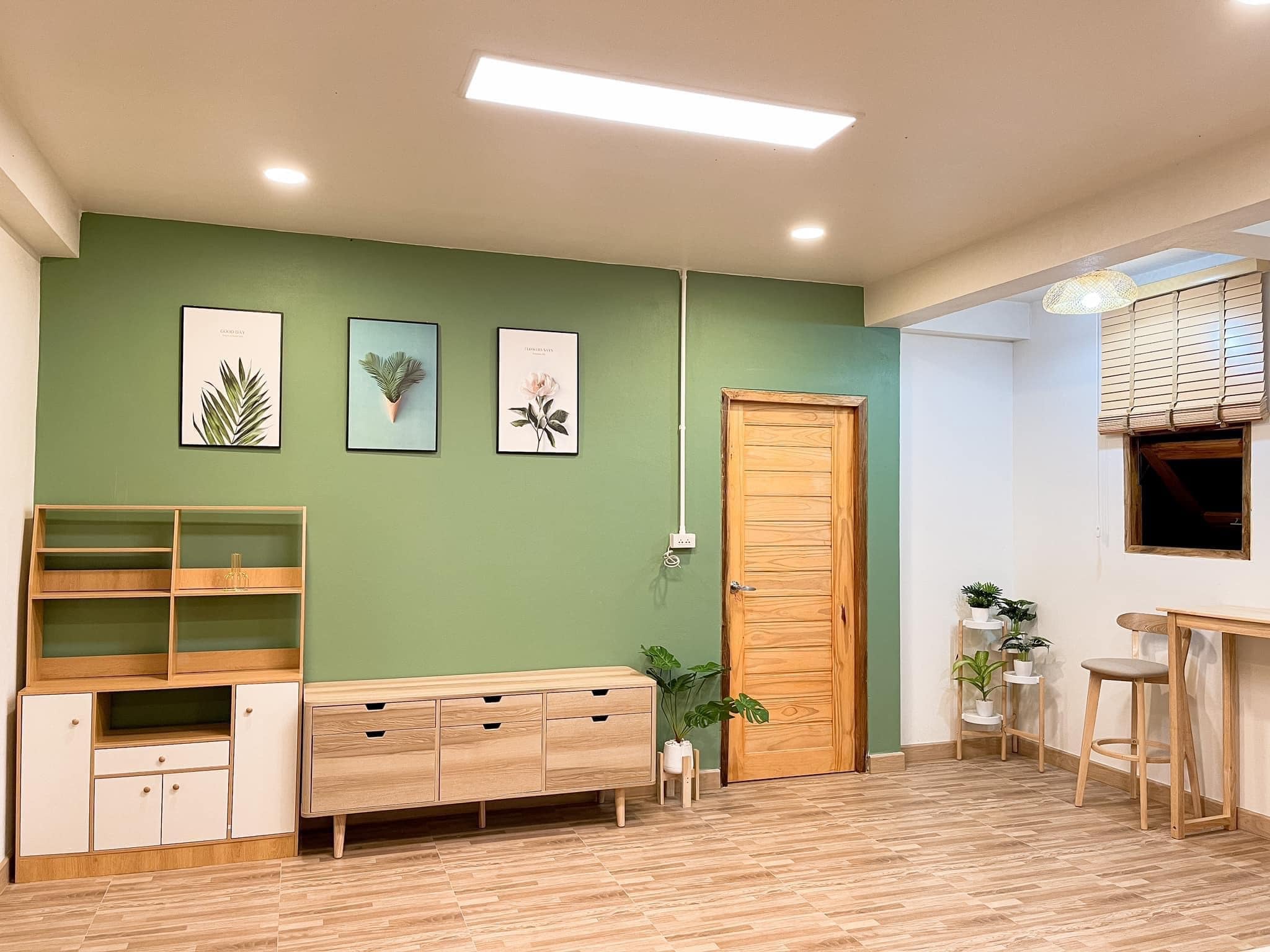 ด้านการตกแต่งนั้น นอกจากจะมีโทนสีขาวครีม ผสานกับสีน้ำตาล อันเป็นเอกลักษณ์เฉพาะตัวของสไตล์มินิมอลแล้ว เจ้าของยังเพิ่มสีเขียวเข้าไปด้วย จึงทำให้บ้านดูมีความสดชื่นมากขึ้น