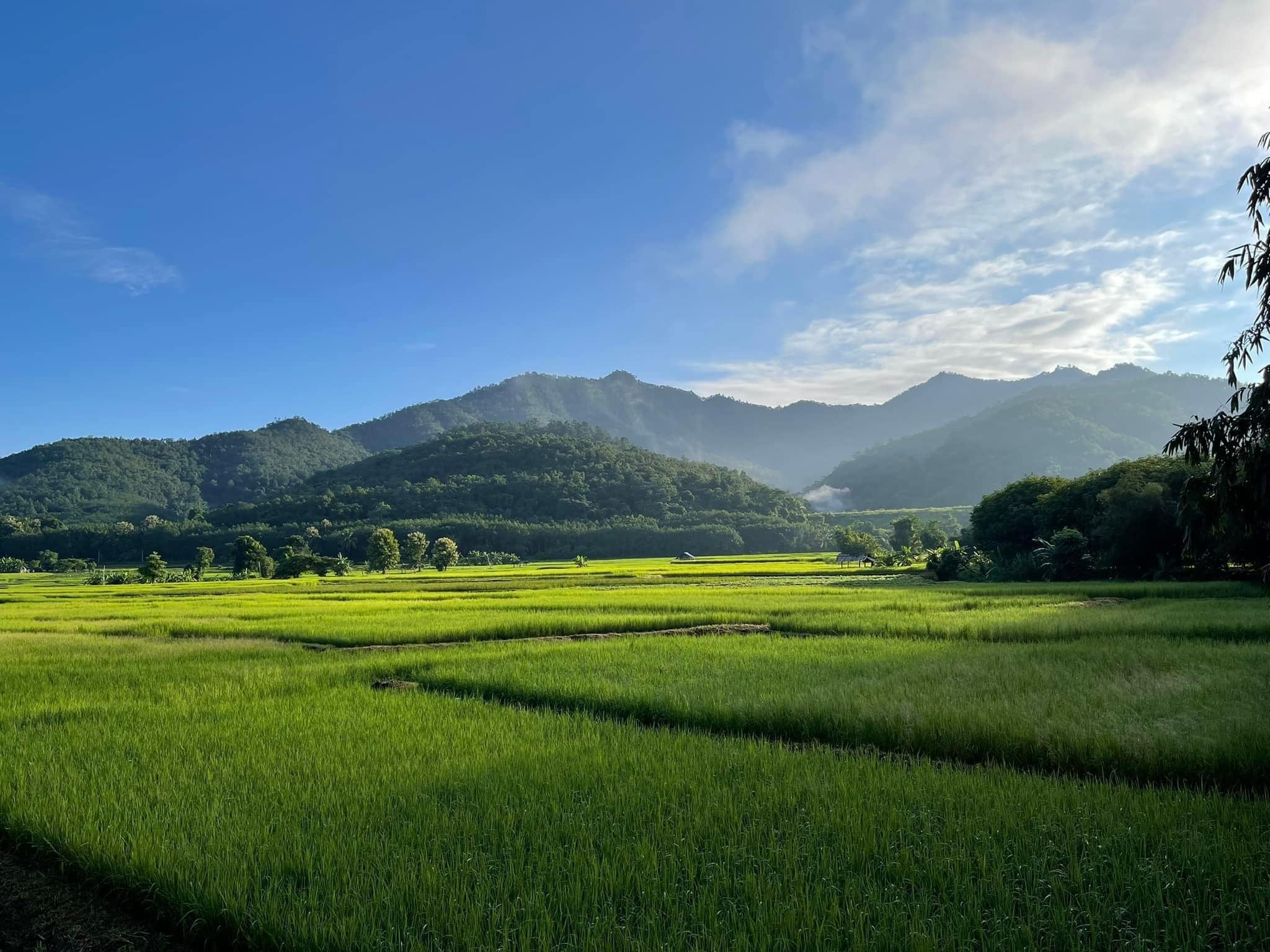 บรรยากาศรอบ ๆ จะเป็นทุ่งนา แปลงผัก และภูเขา จึงให้บรรยากาศที่ร่มรื่นสวยงาม เหมาะกับการเป็นบ้านพักตากอากาศนั่นเอง