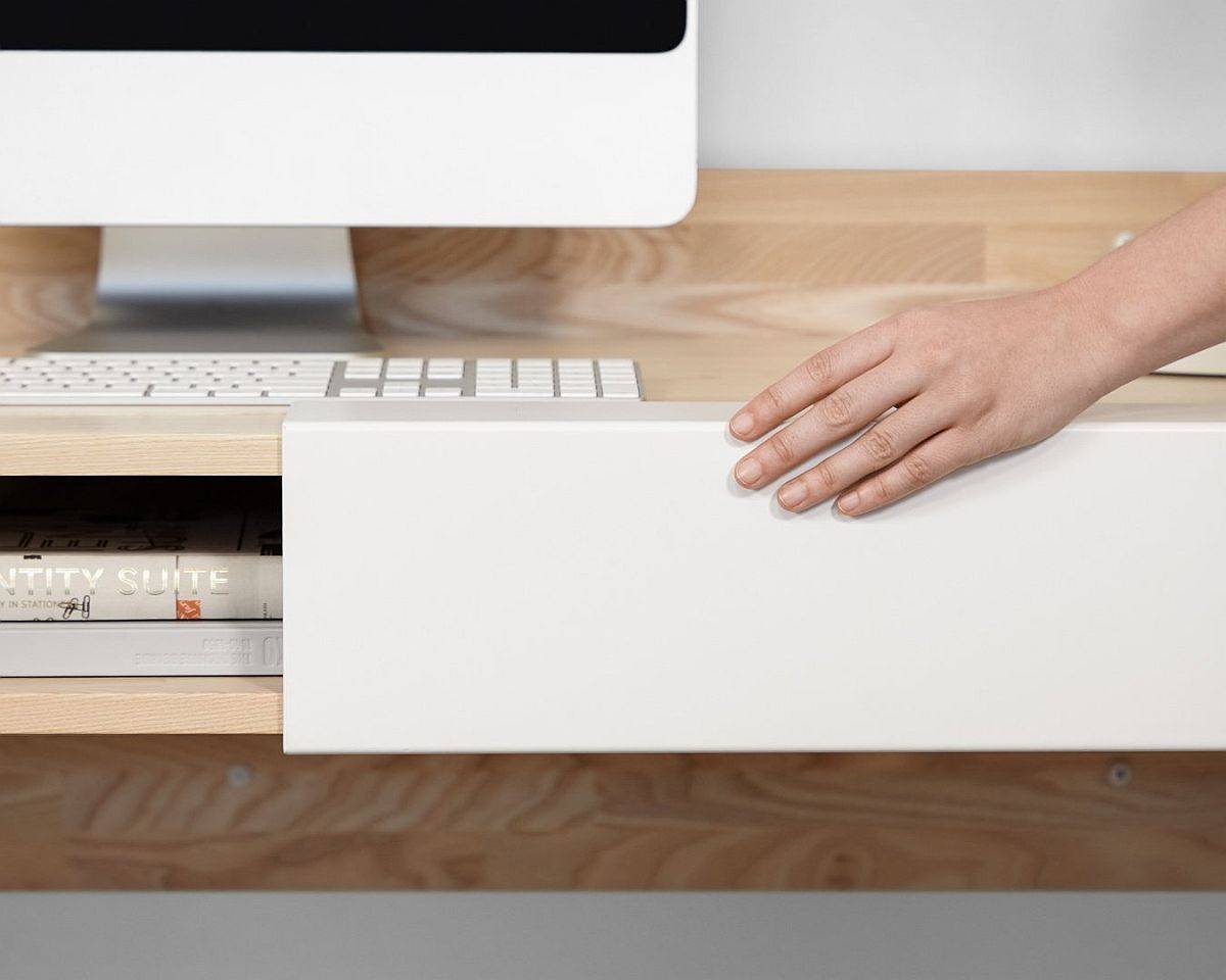 ซึ่งโต๊ะทำงานชิ้นนี้จะมีมีชั้นสองชั้น ชั้นล่างจะมีพื้นที่เพียงพอสำหรับคอมพิวเตอร์โน้ตบุ๊ค ในขณะที่ชั้นบนขนดเล็ก สามารถตกแต่งได้ตามต้องการ