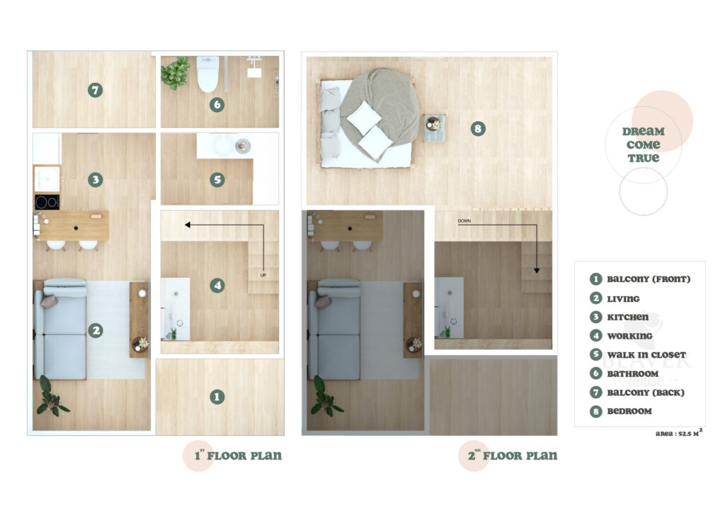 แบบแปลนภายในบ้านทั้งสองชั้น