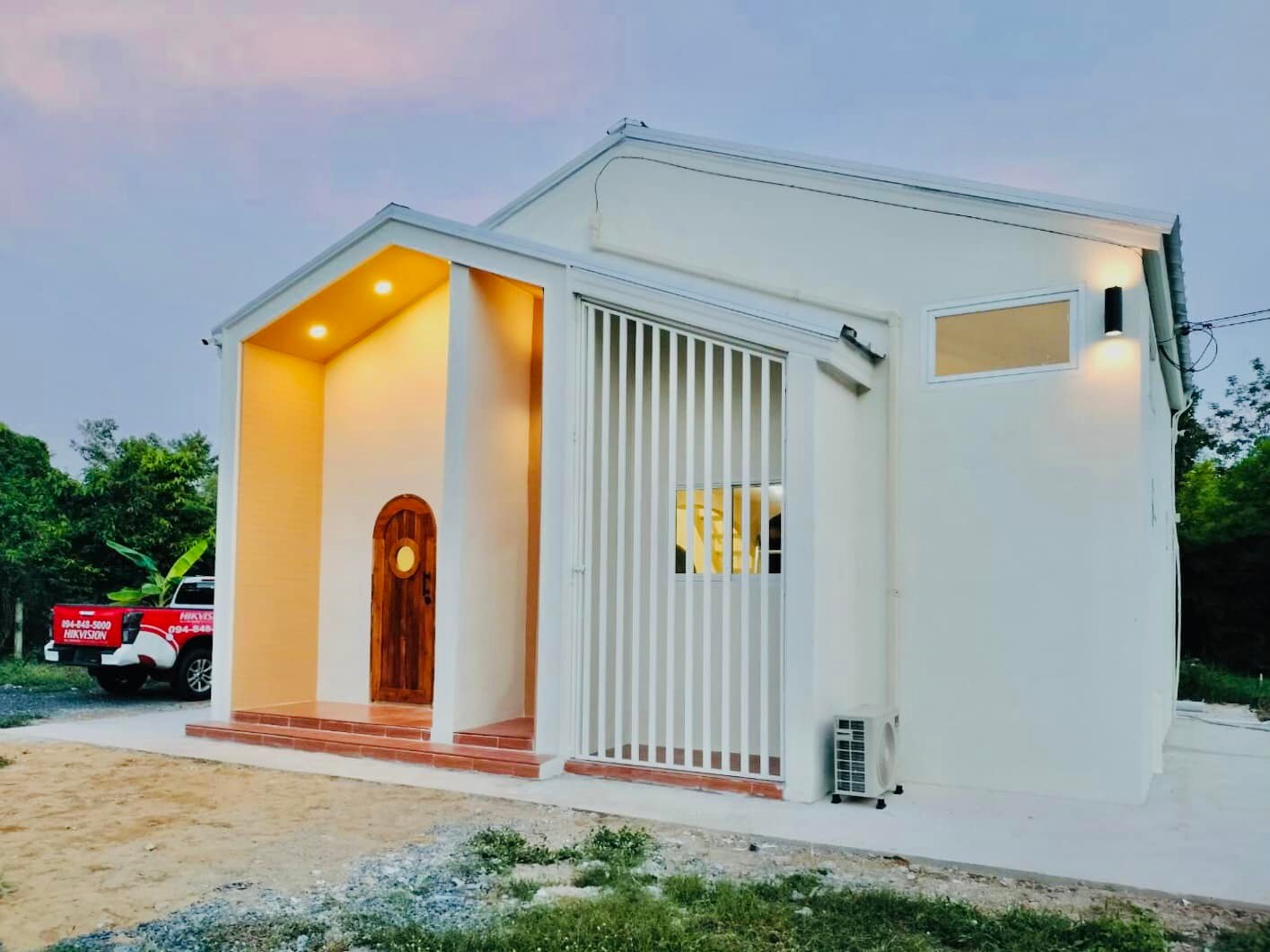 บ้านสไตล์มินิมอลหลังนี้ประกอบไปด้วย 2 ห้องนอน 1 ห้องน้ำ 1 ห้องโถงใหญ่ พร้อมเฉลียงนอกบ้าน พื้นที่ใช้สอยทั้งหมดประมาณ 84 ตารางเมตร งบก่อสร้างอยู่ที่ประมาณ 6 แสนบาท
